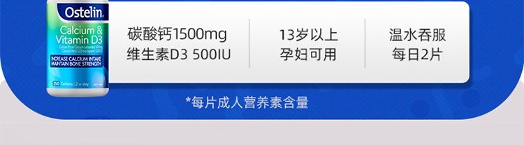 【保税】澳洲 奥斯特林 成人维生素D3+钙片 250粒/瓶