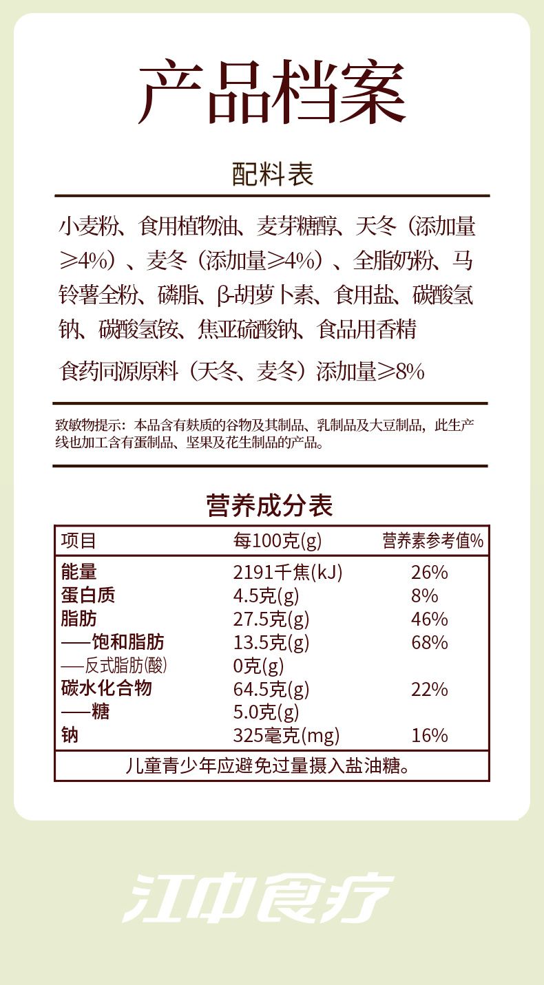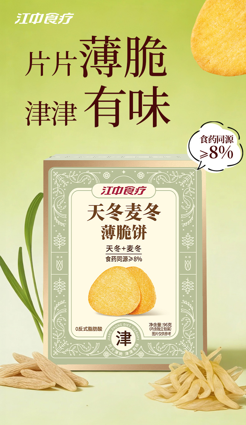 【天冬麦冬】江中食疗天冬麦冬薄脆饼干96g生产日期2025年12月,保质期12个月