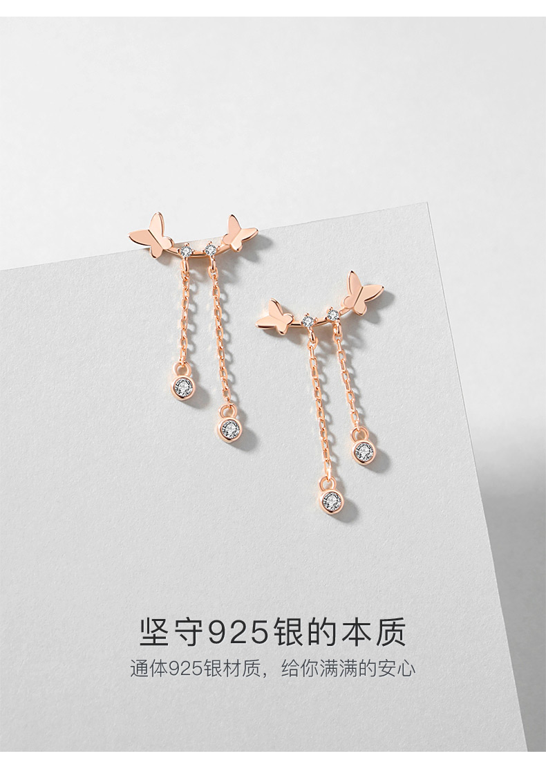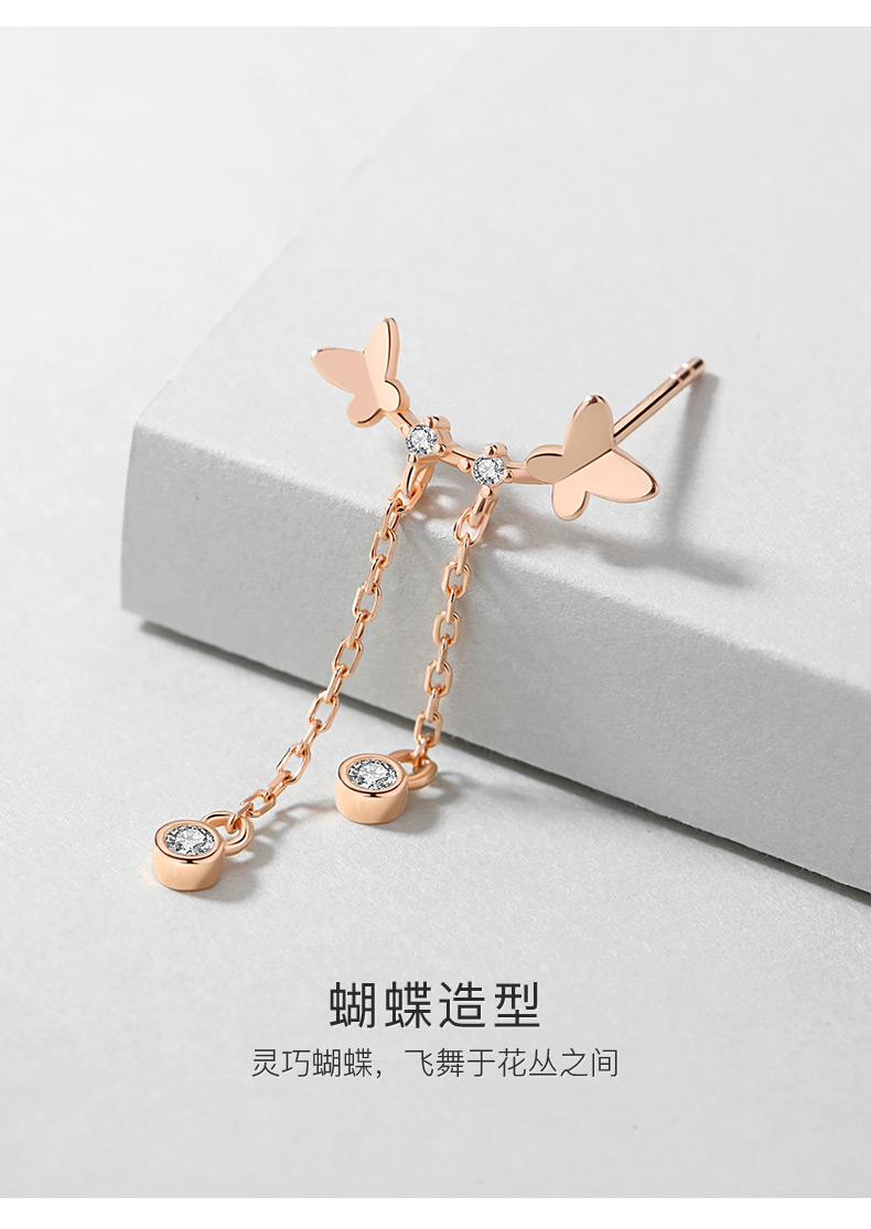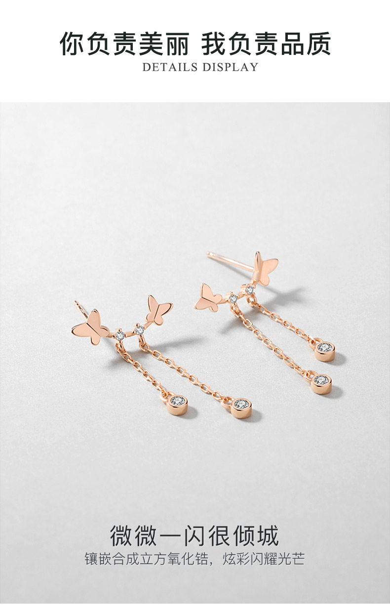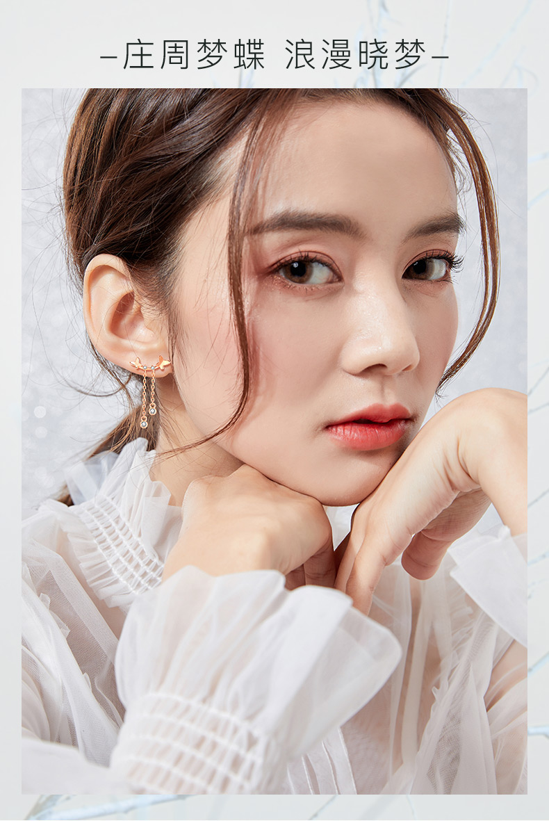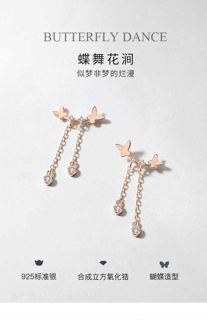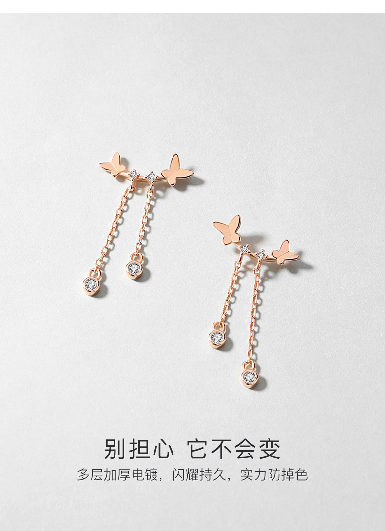 银千惠/蝴蝶纯银耳坠女气质长款简约耳环新款潮韩国个性网红耳饰