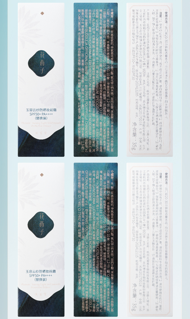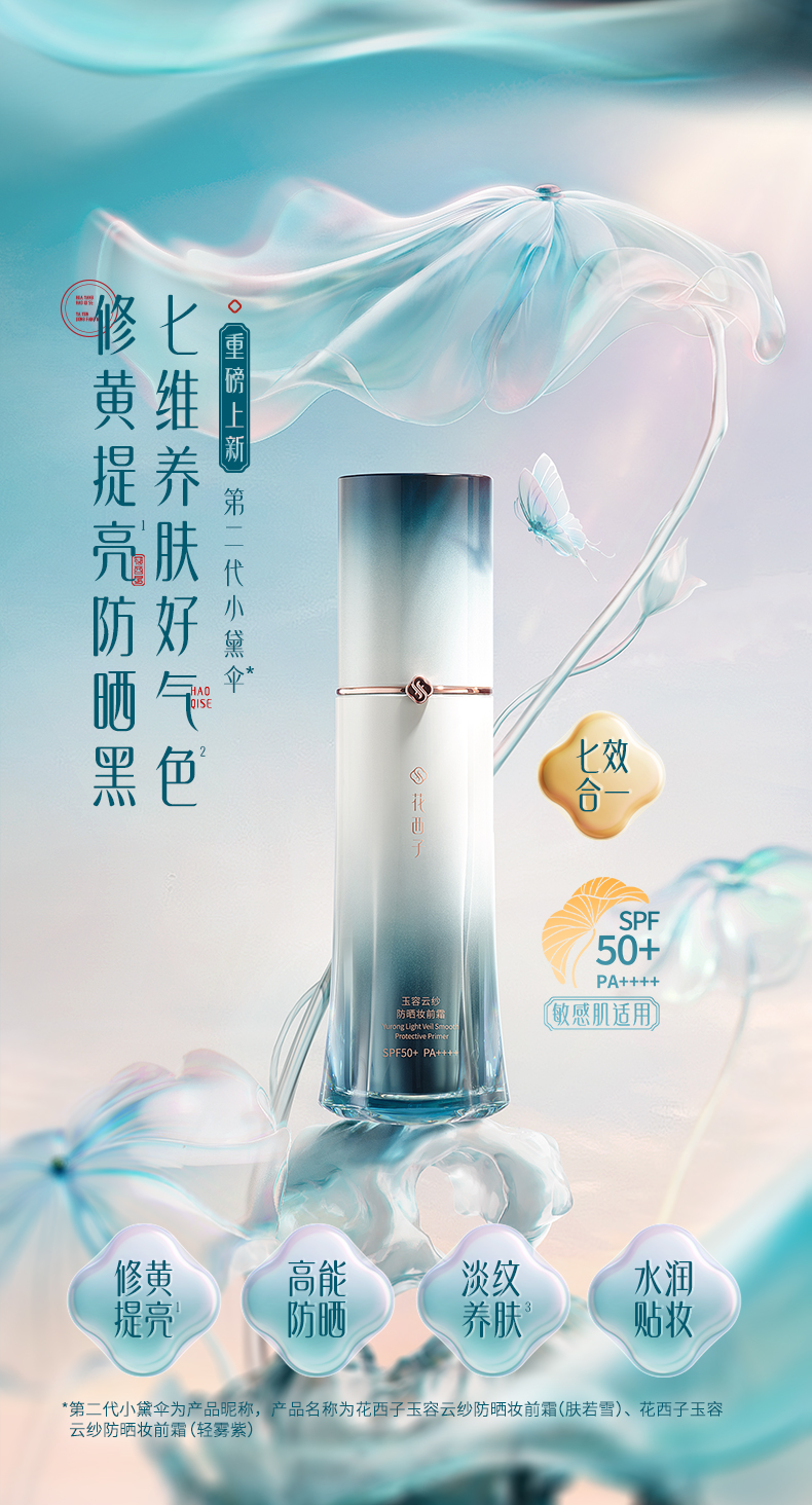 【门店专享】花西子玉容云纱防晒妆前霜-55g大容量装-SPF50+/PA++++