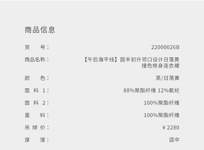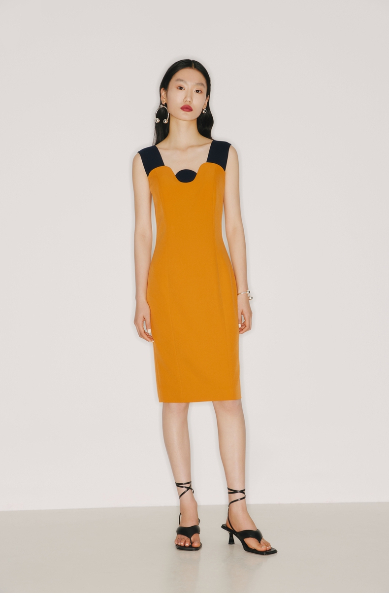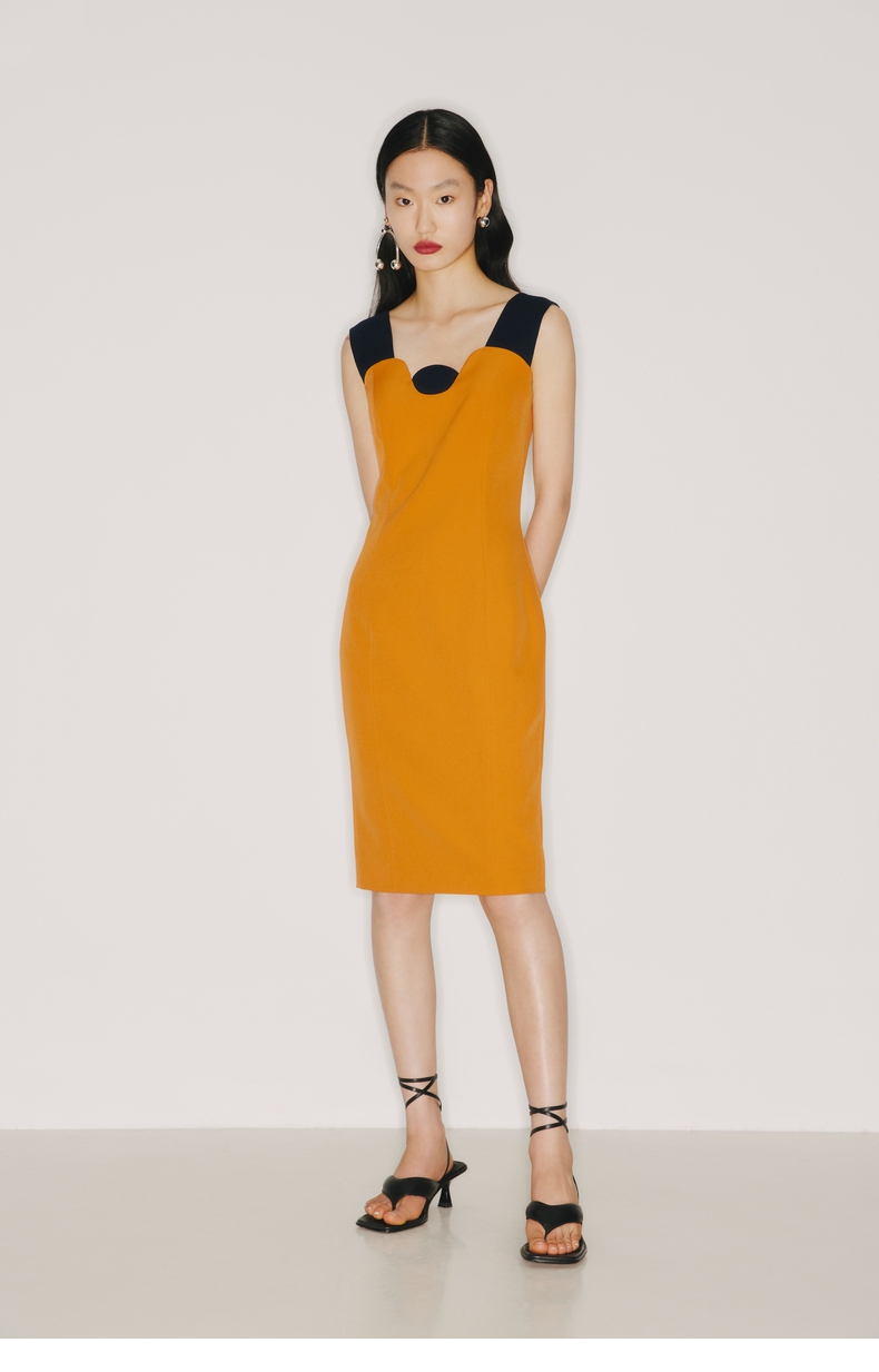 【午后海平线】圆半初升领口设计日落黄撞色修身连衣裙/22000026B