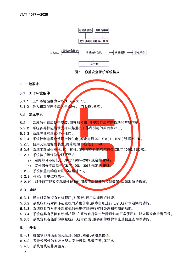 书名:抓斗起重机称重安全保护系统技术要求(JT/T 1577—2026)