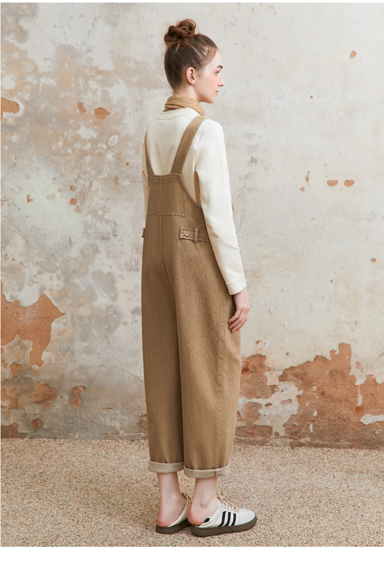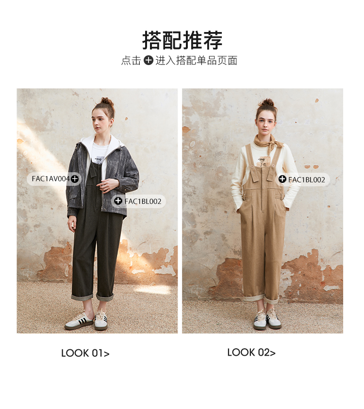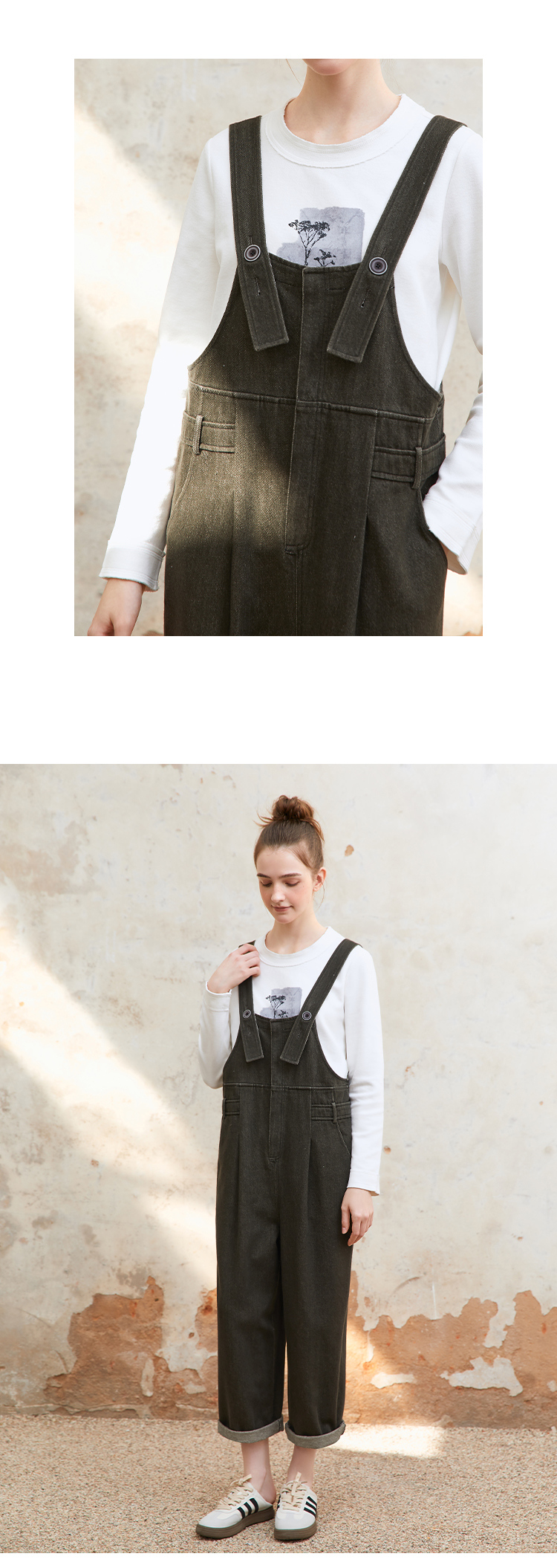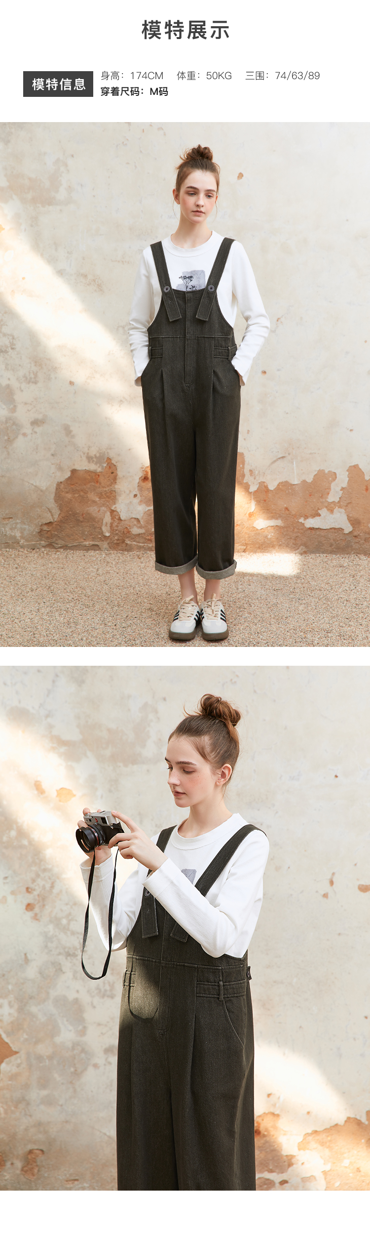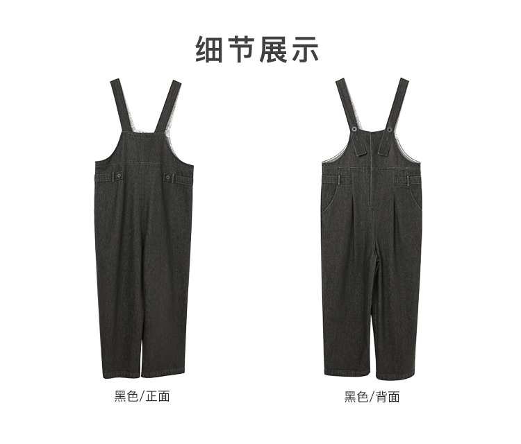 Famecoco范可儿纯棉休闲背带裤女士减龄运动黑色长裤FAC1GF001