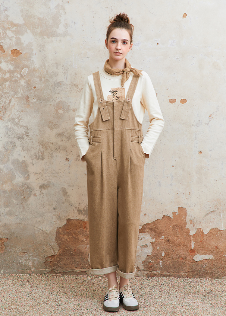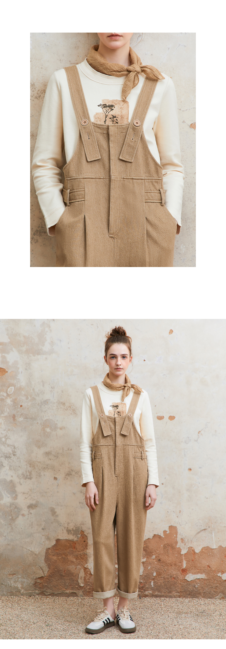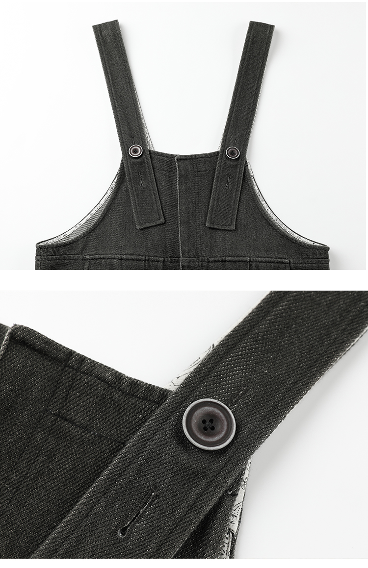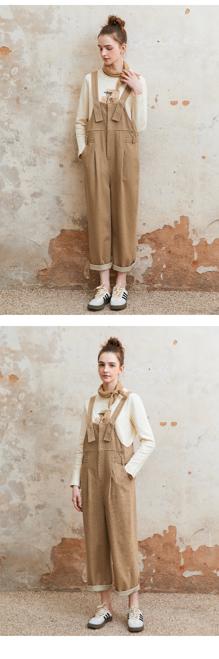 Famecoco范可儿纯棉休闲背带裤女士减龄运动黑色长裤FAC1GF001