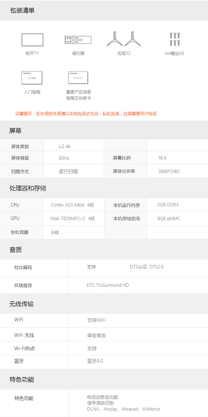 coocaa/酷开 5S 60创维60吋4K高清智能网络平板液晶电视机
