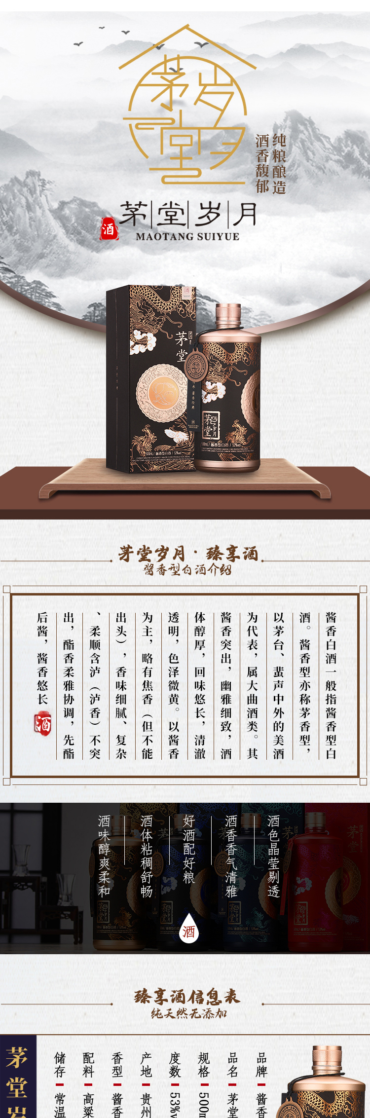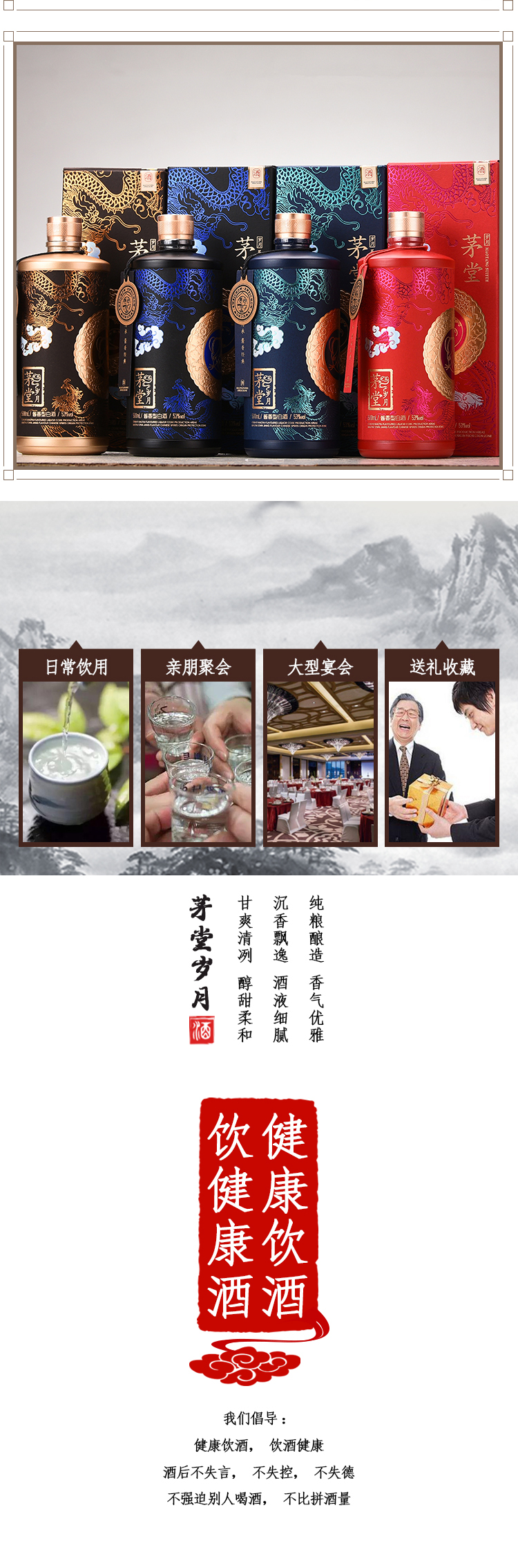 贵州茅台镇茅堂岁月臻享酱香型白酒500ML(红金蓝黑四色款)