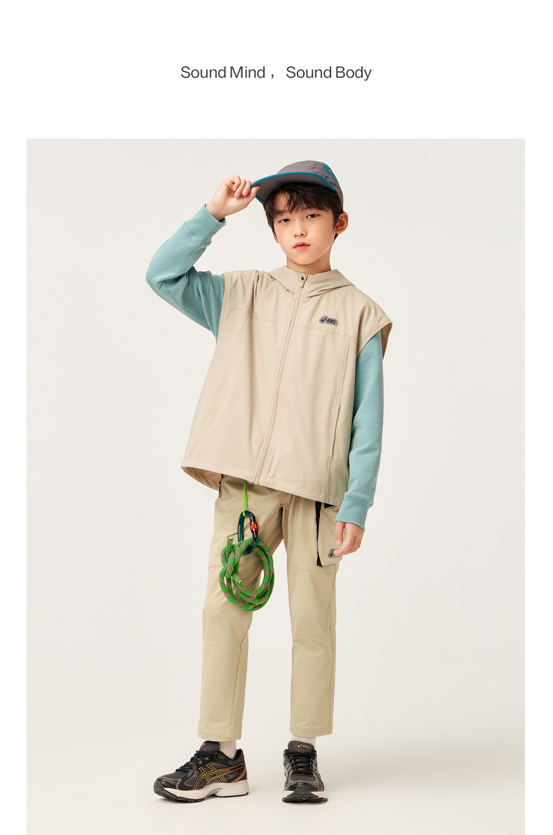 【商城同款】ASICS/亚瑟士童装三防秋季马甲百搭叠穿户外运动马甲