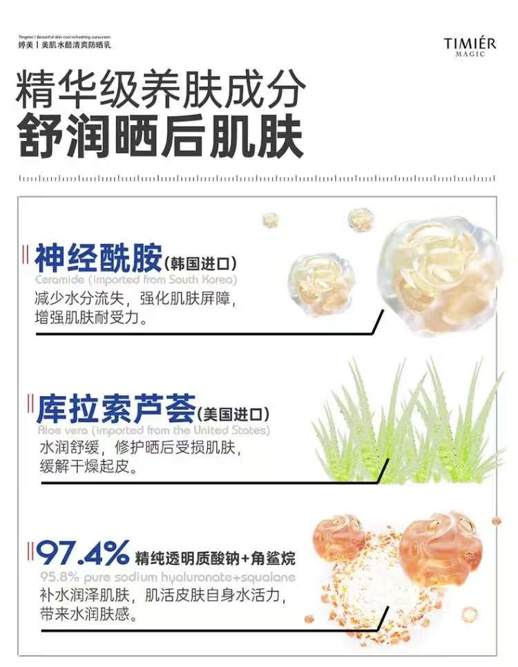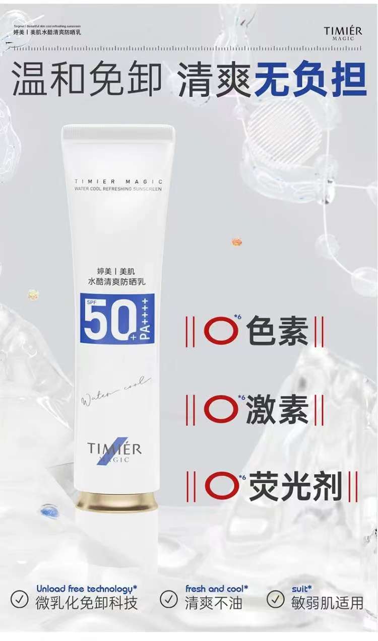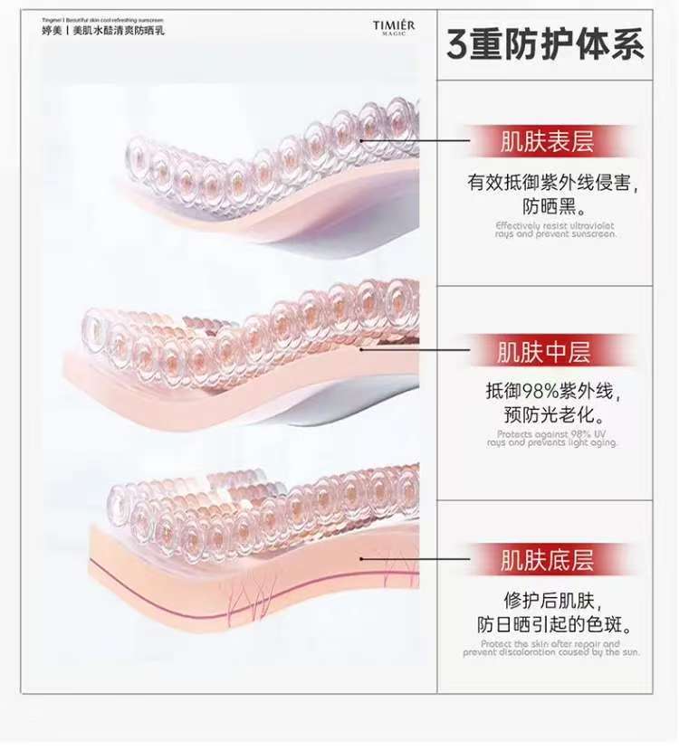 【诺贝尔团队出品】 3支只要69.9元 大爆款 婷美美肌清爽防晒霜 SPF50+ PA++++|一支搞定=防晒+隔离+防光老化+防水+防汗+提亮