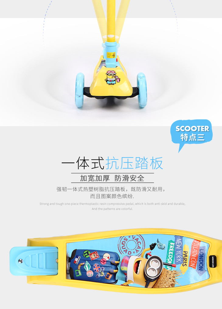 迪士尼小黄人儿童滑板车二合一可坐式多功能摇摆车宝宝滑滑车扭扭车 XCA71109