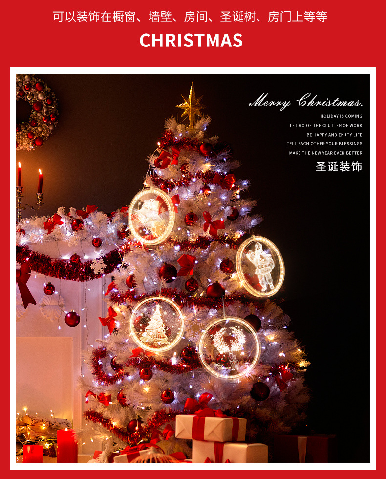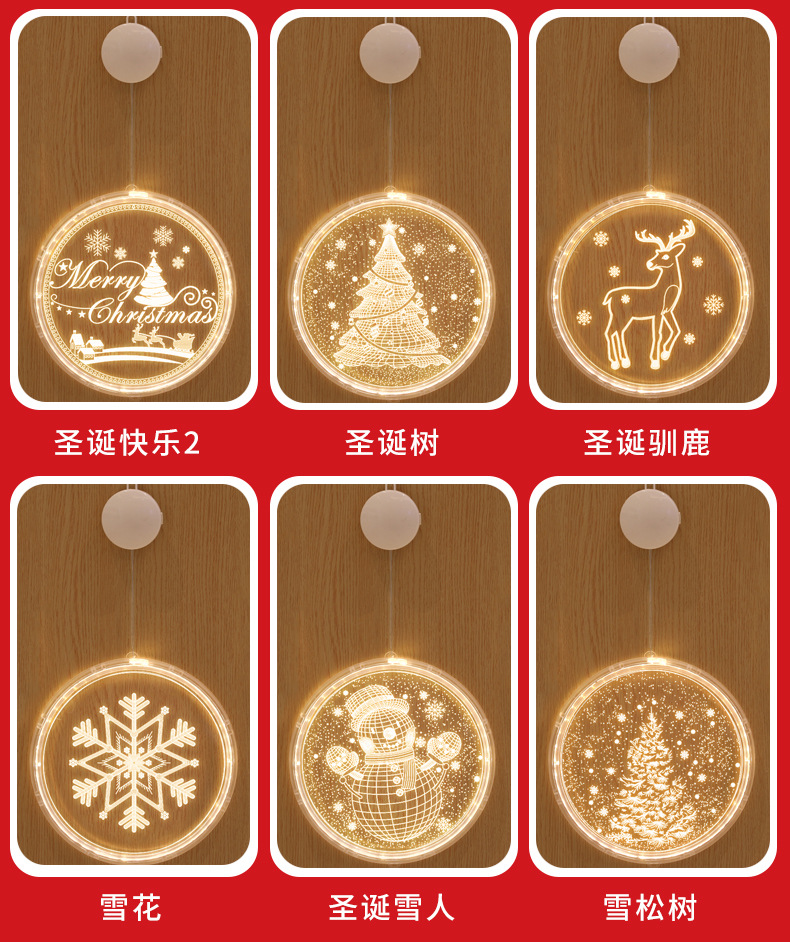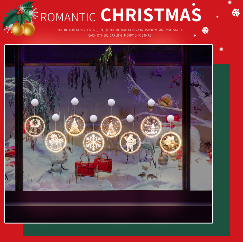 【圣诞挂件】新品圣诞节氛围装饰彩灯发光字母吸盘挂灯LED灯串电池款圣诞夜灯。ry
