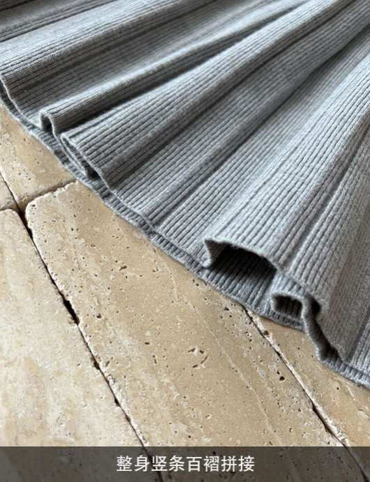 用柔软的针织面料, 不仅穿着舒适透气, 还具有一定的弹性, 能够很好地贴合身体曲线。 针织面料还具有一定的保暖性能, 适合在秋冬季节穿着。 此外,还具有一定的垂坠感, 使得裙子更加挺括有型, 不易变形