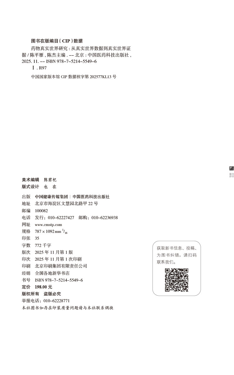 书名:药物真实世界研究:从真实世界数据到真实世界证据