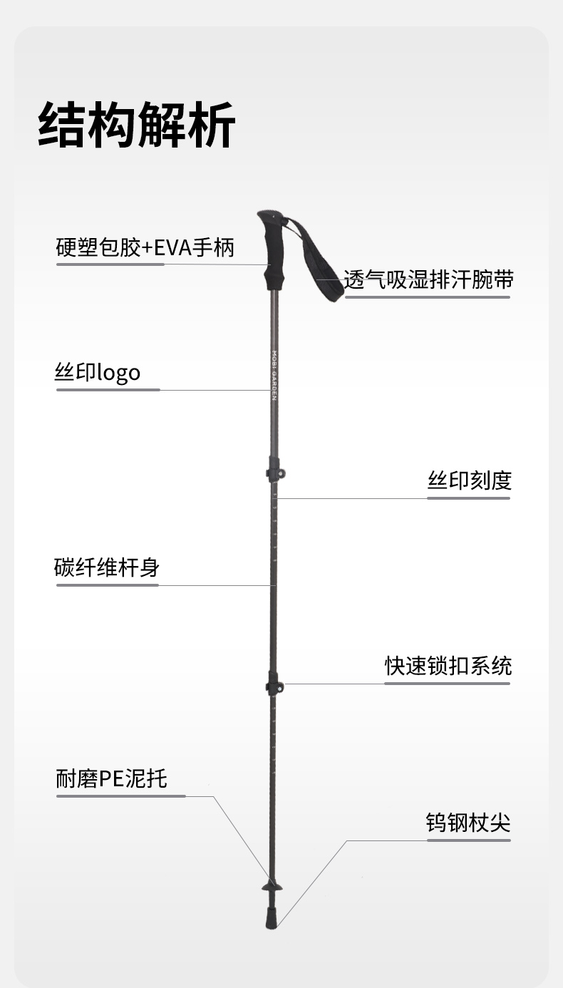 【632优选】牧高笛 碳纤维登山杖JT 曜石黑 NX25667006-SH1156