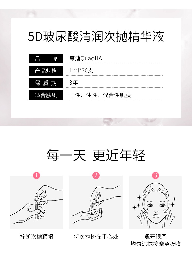 【夸迪】夸迪5D玻尿酸清润次抛精华液[1ml×30/盒] 水御活力强韧不止