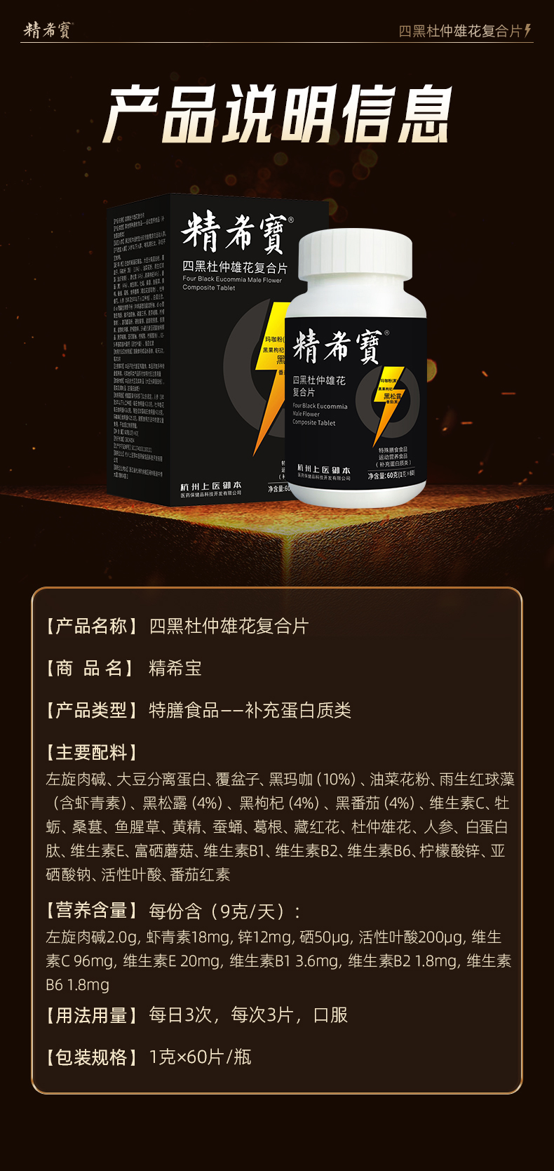 精希宝 四黑杜仲雄花复合片 男性高端滋补少精弱精畸精DNA碎片化