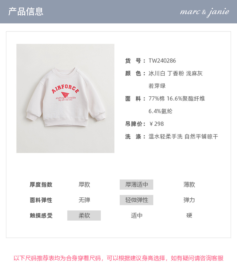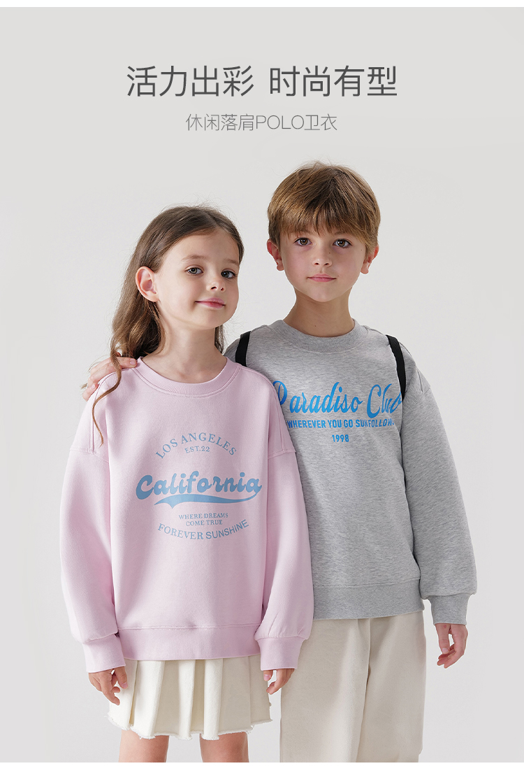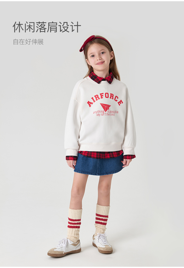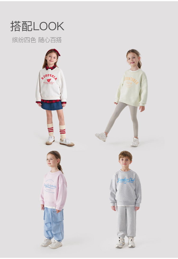 [空气层]马克珍妮男女童撞色字母卫衣儿童宽松圆领春款上衣240286