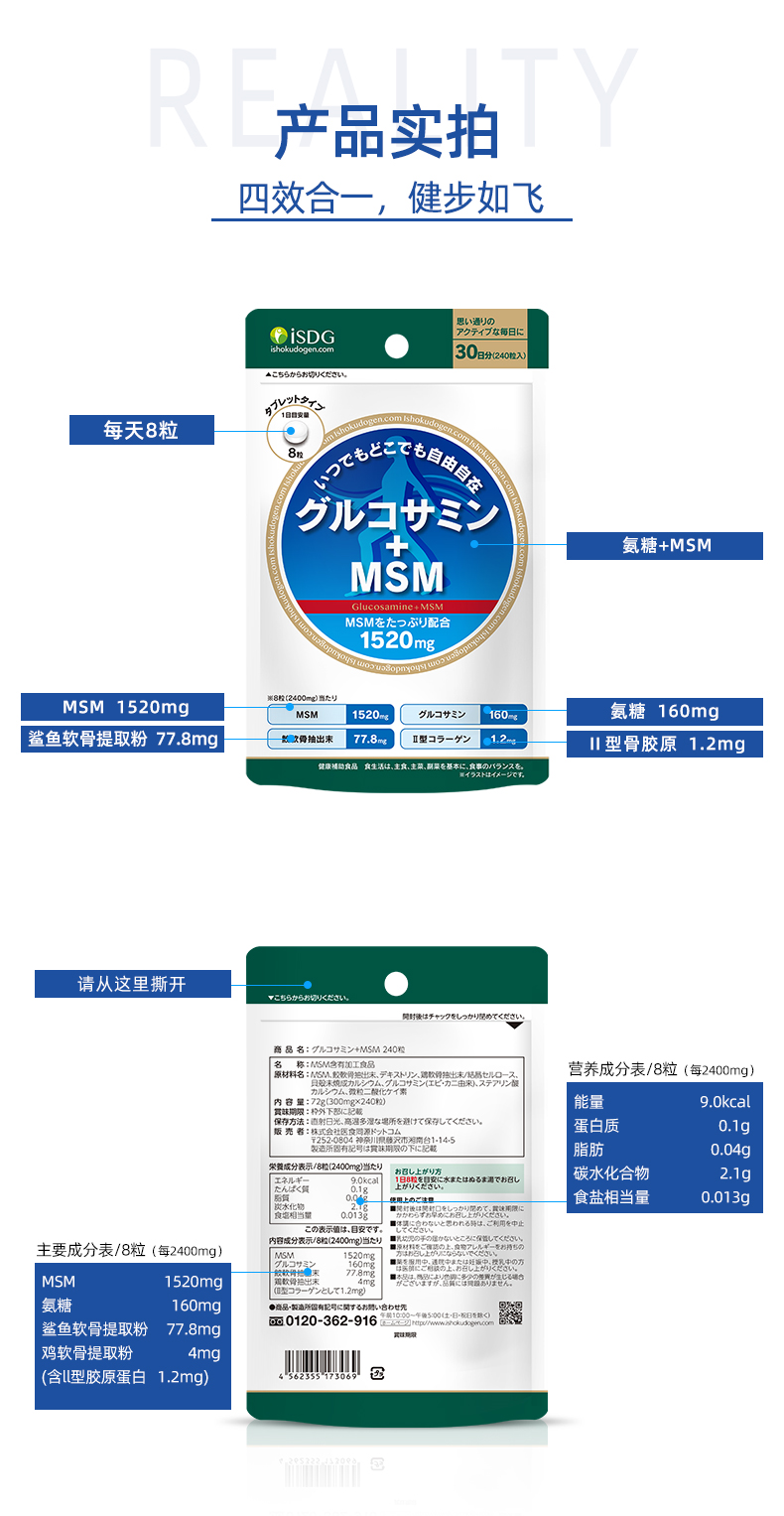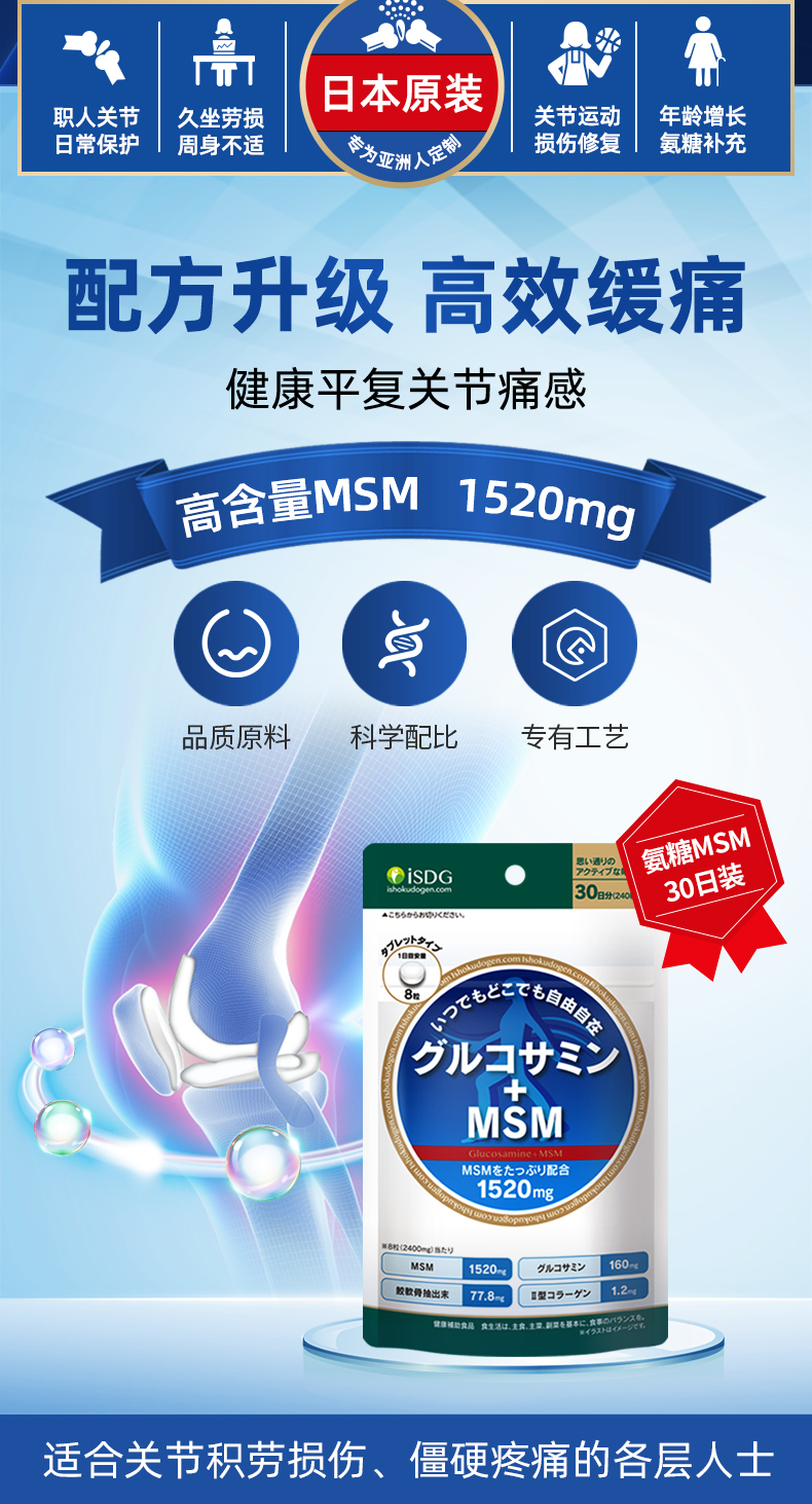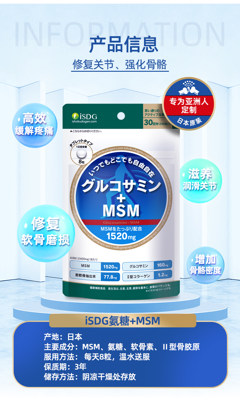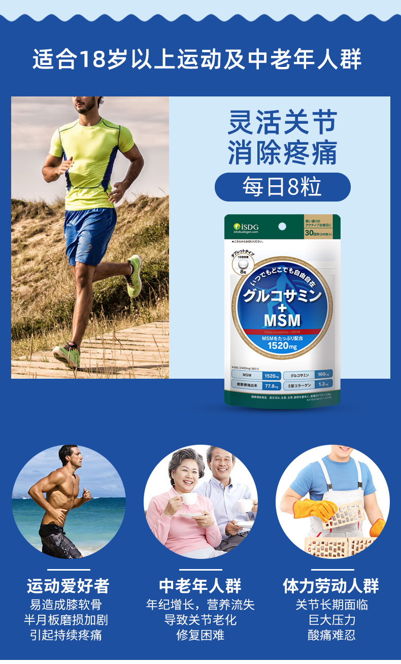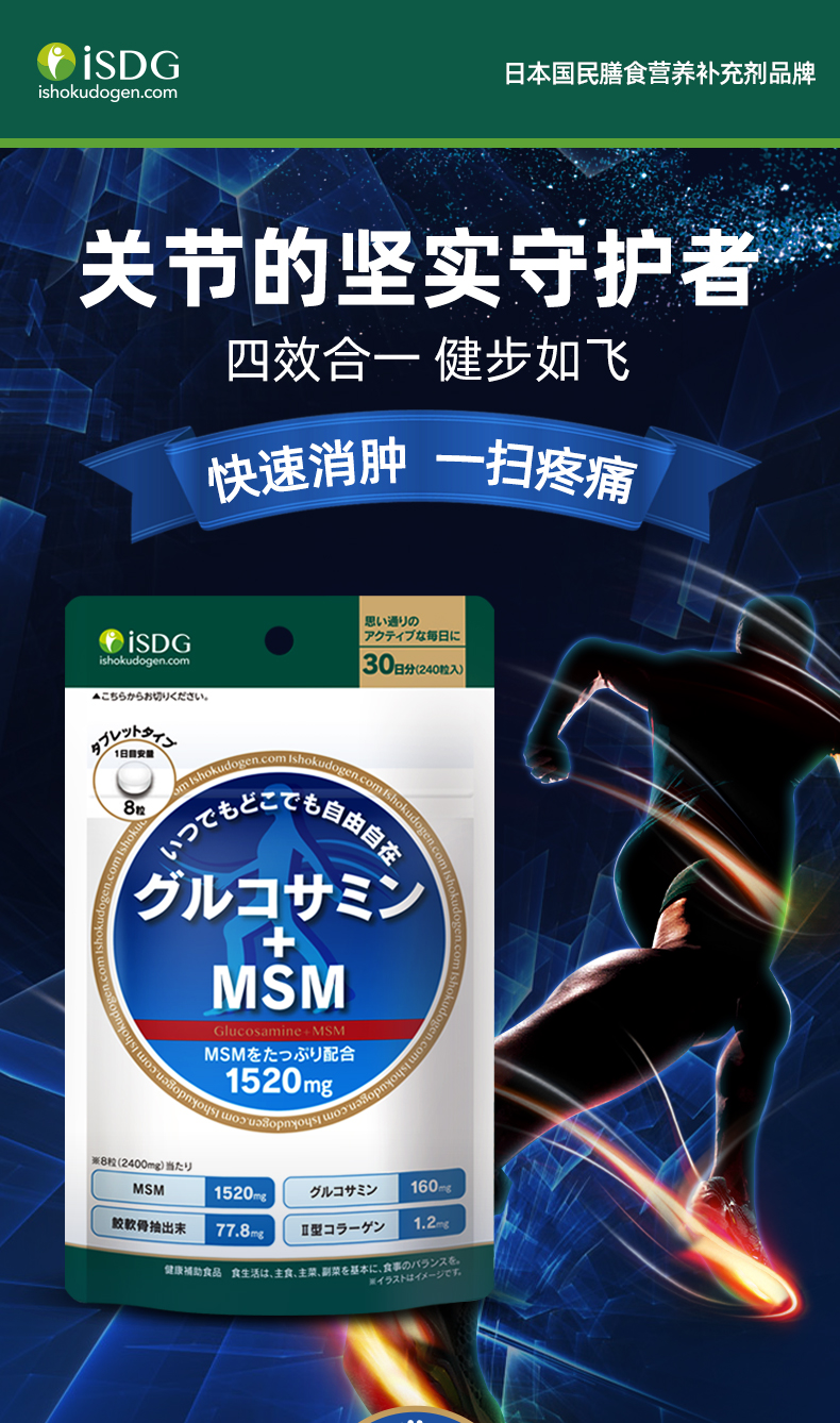 【品牌直营】ISDG日本进口硫酸氨糖软骨素片MSM快速镇痛 骨胶原维骨力关节宝 30日装 2027-12-11到期