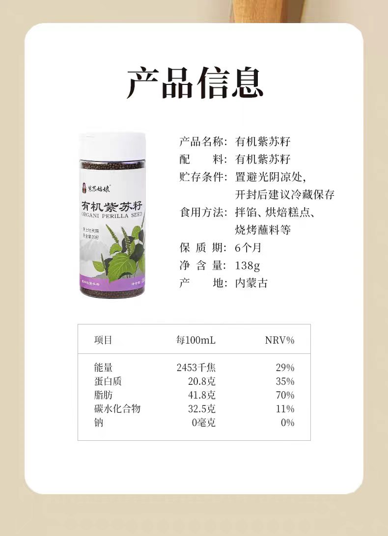 【甄选】有机紫苏籽颗粒饱满口感酥脆源头直发吃法多样138g/罐