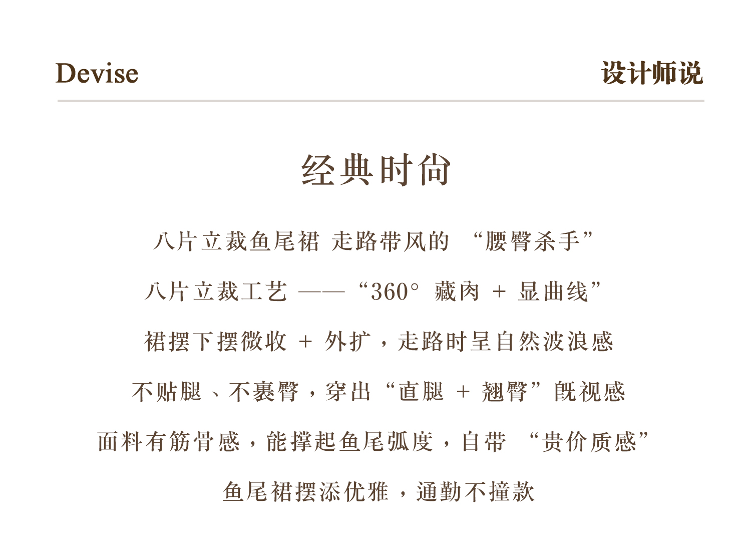 八片立裁鱼尾裙 走路带风的优雅半身裙 久坐/大步走都不束缚 全天舒适 米思阳2026春新款高腰通勤优雅八片式分裁半身裙女5844