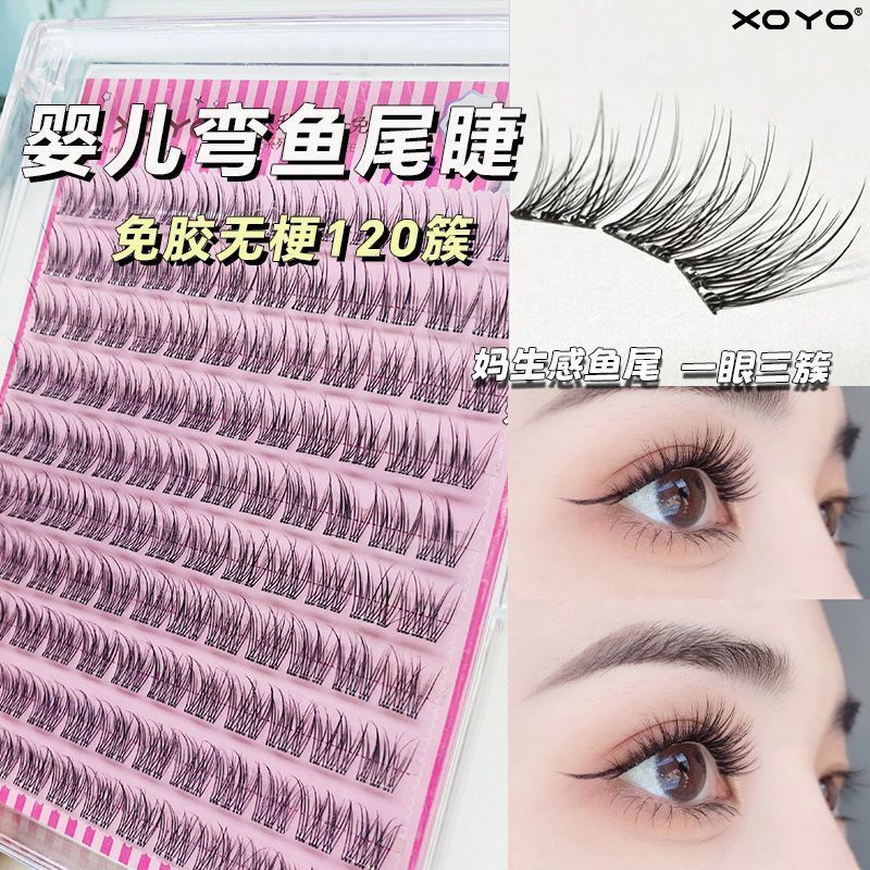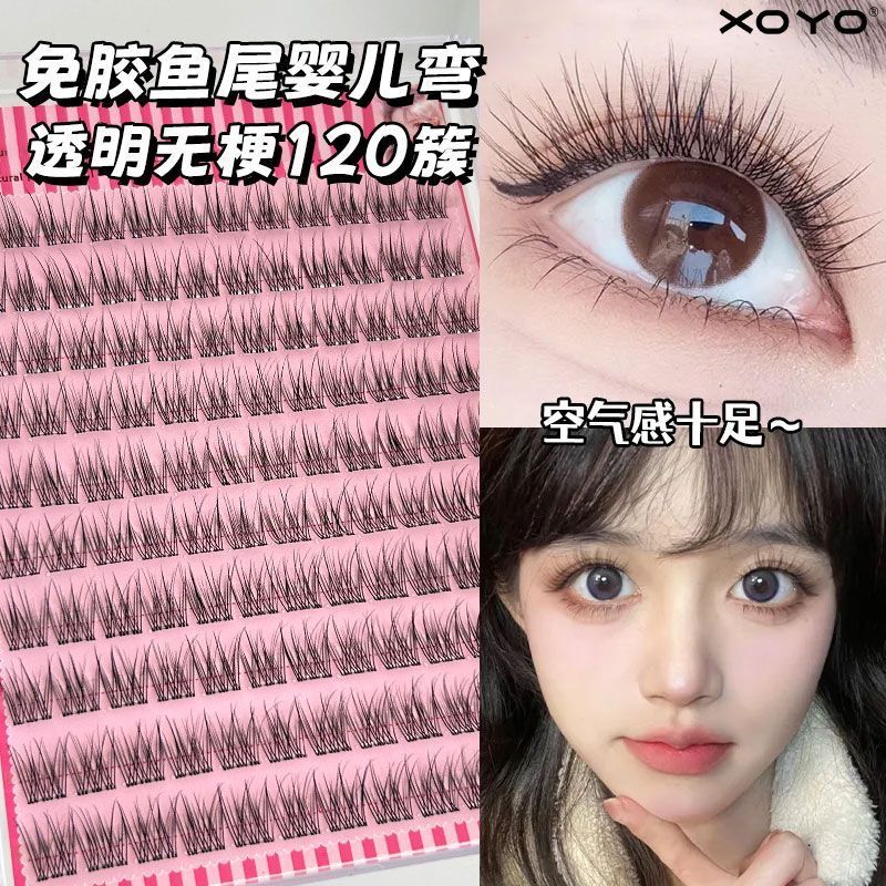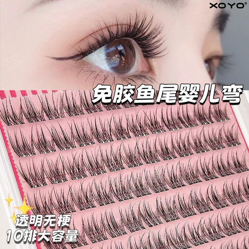 【空气感十足❗️免胶鱼尾婴儿弯】妈生感鱼尾一眼三簇,超细,超柔软,和真睫毛能融为一体,鱼尾假睫毛嫁接妈生自然仿真分段式单簇QQ