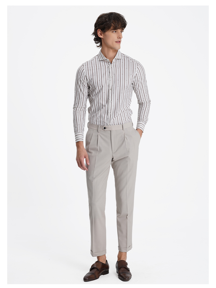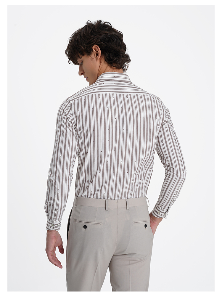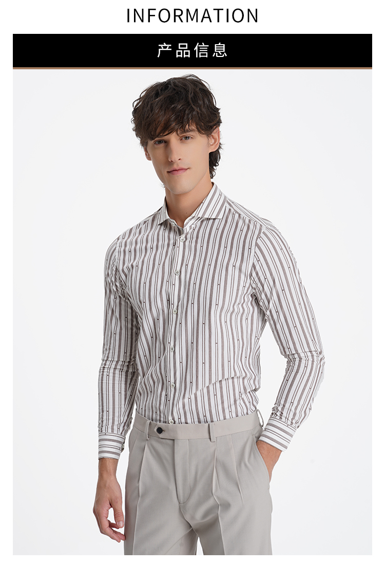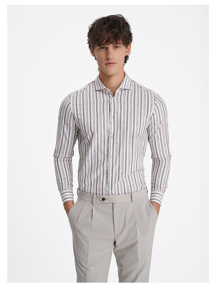 callisto松弛系列米色条纹亲肤棉衬衫