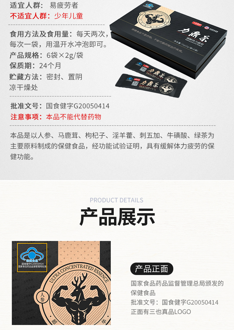 三也真品 力鼎茶体验装6袋 保健品男滋补养生茶保健茶 6袋/盒 缓解体力疲劳营养保健品