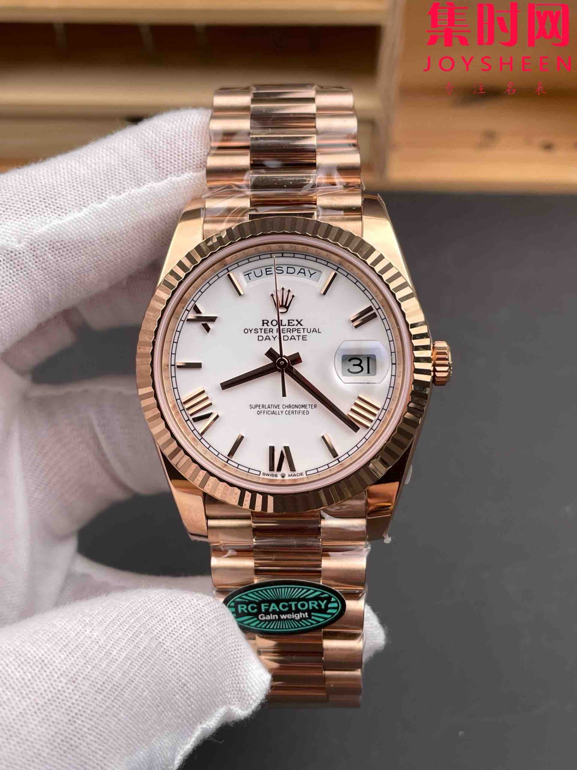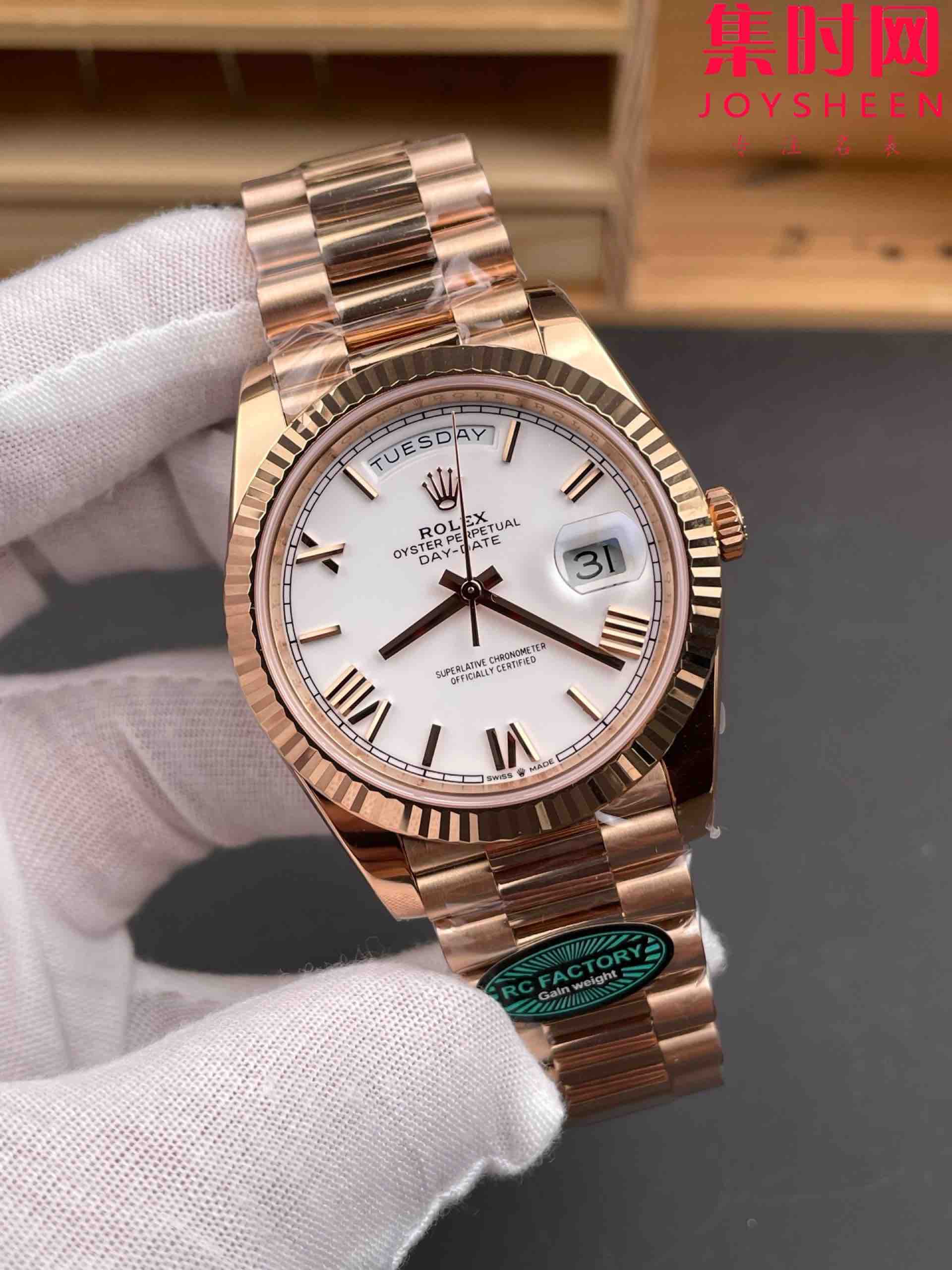 RC配重版 重量200克+ 玫瑰金白罗马DD 劳力士星期日历型系列 日志40mm
