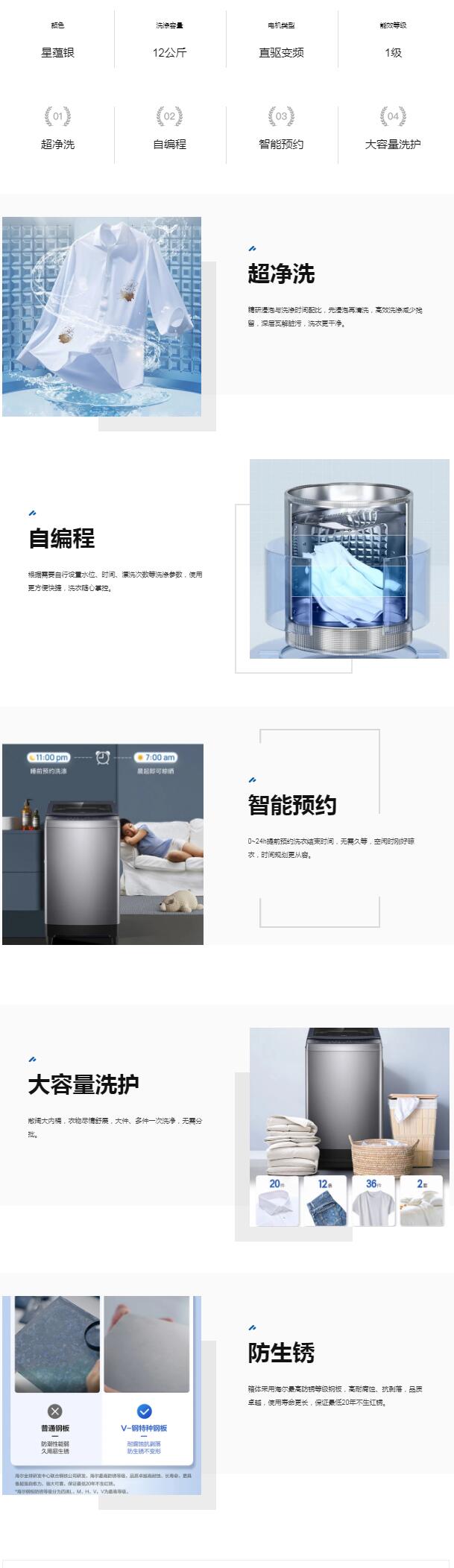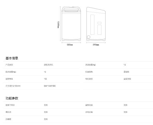 海尔波轮洗衣机(252149)12公斤直驱变频波轮洗衣机 XQB120-BA608 桶自洁直驱电机节能省电大容量