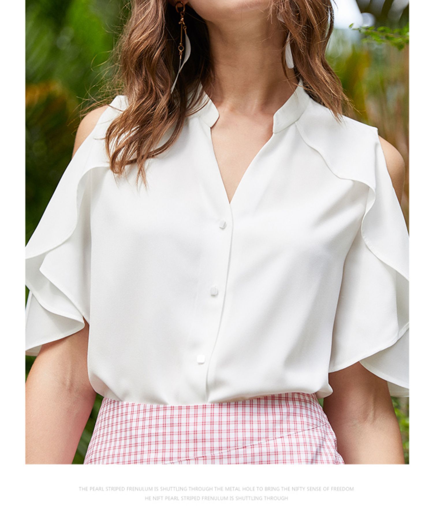 OLrain法式高级穿搭白色雪纺衬衫女夏季2022年新款荷叶边露肩衬衣