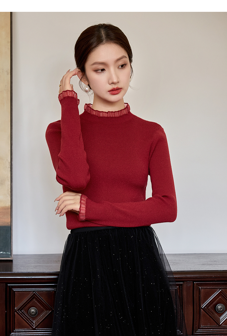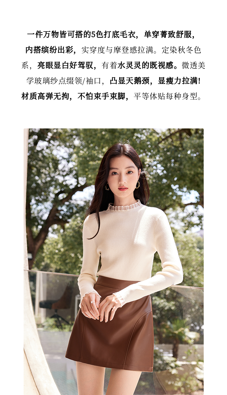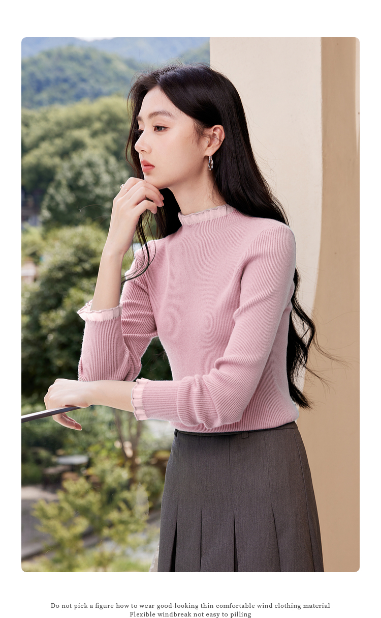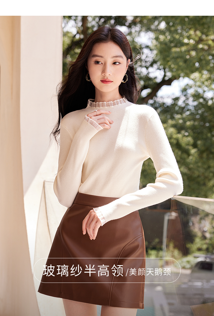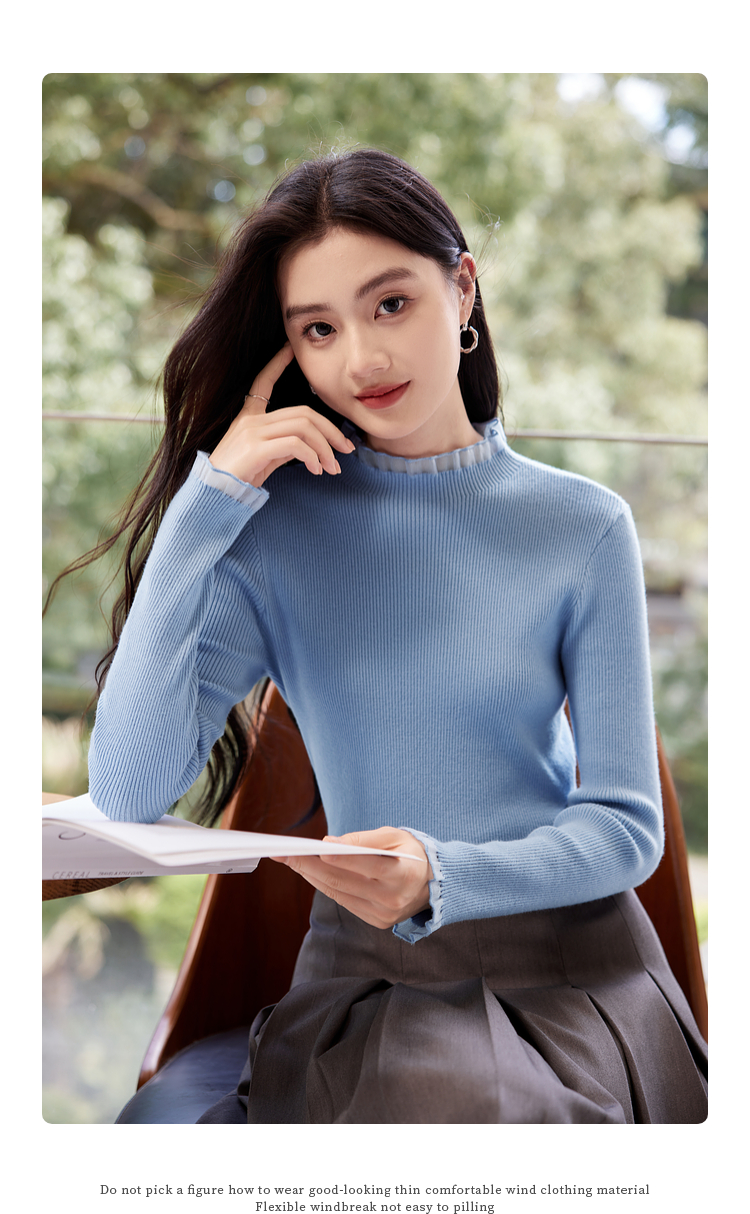 【年终特卖】熙世界木耳边半高领打底衫毛衣2025秋冬新款洋气修身内搭针织衫