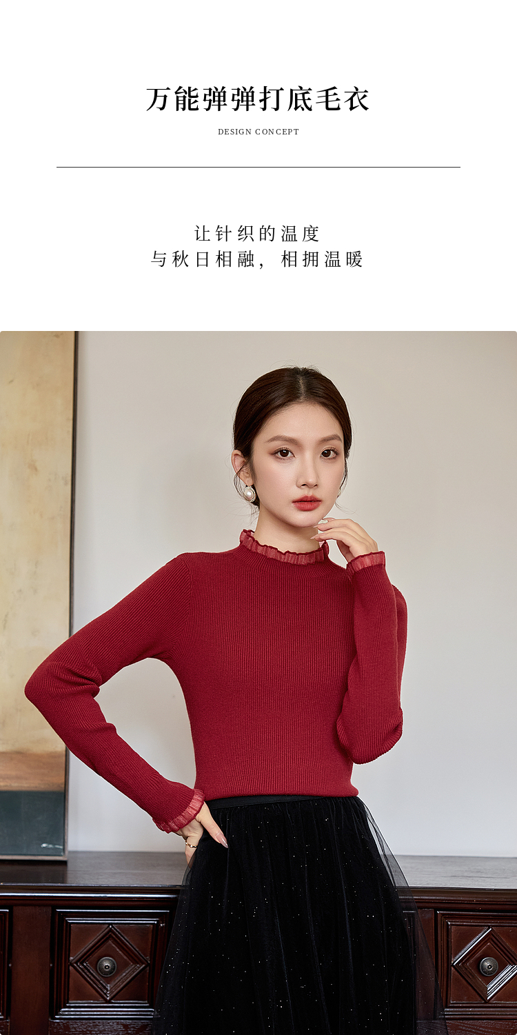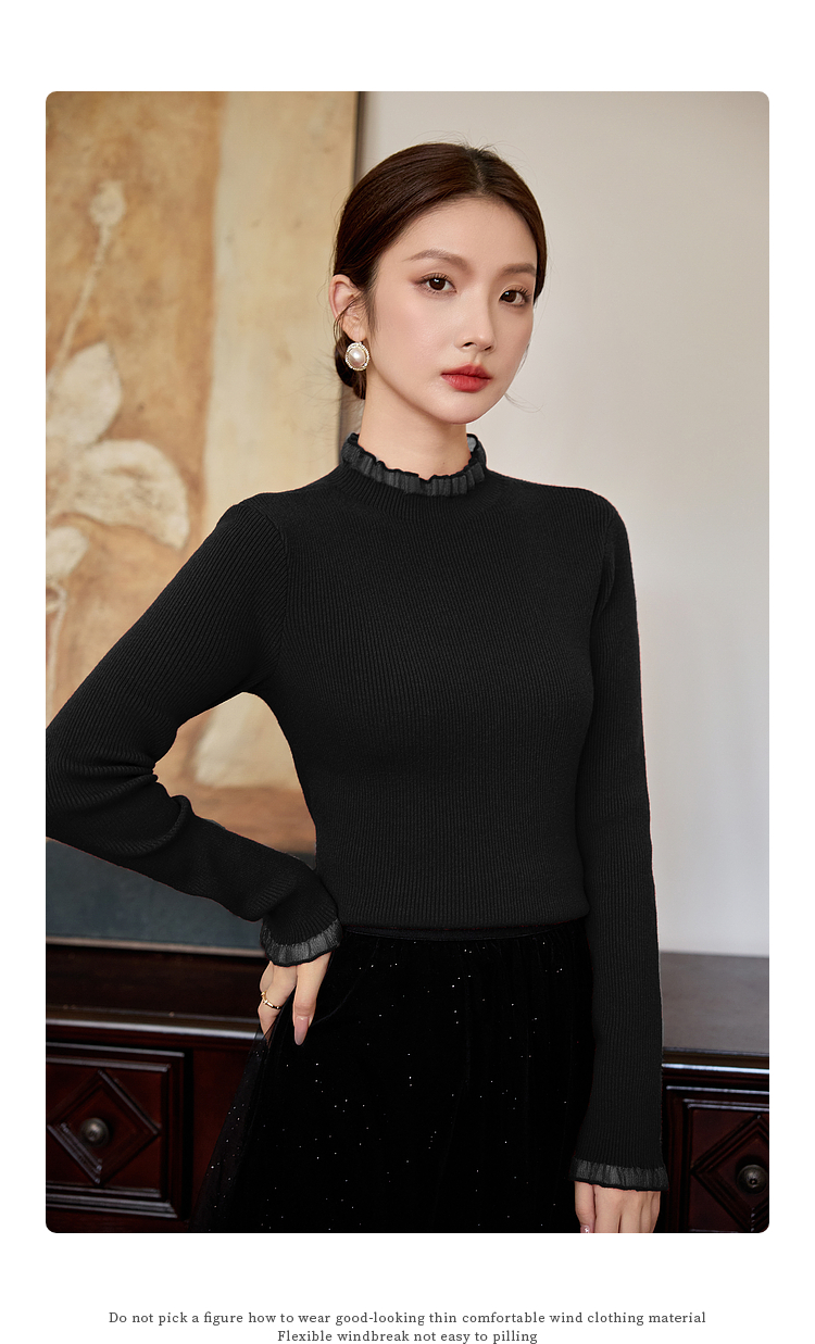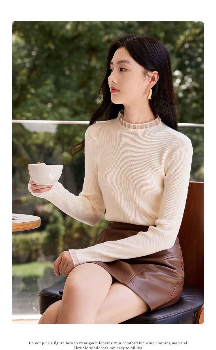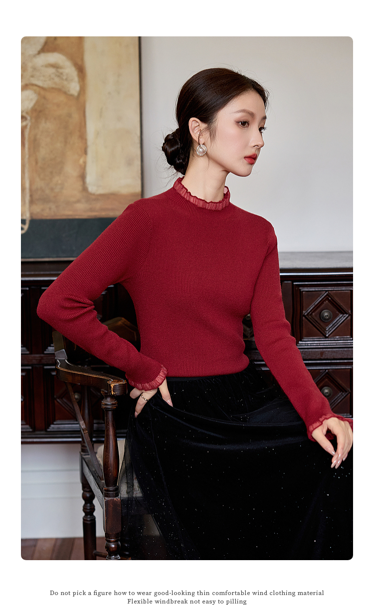 【年终特卖】熙世界木耳边半高领打底衫毛衣2025秋冬新款洋气修身内搭针织衫