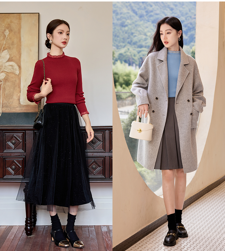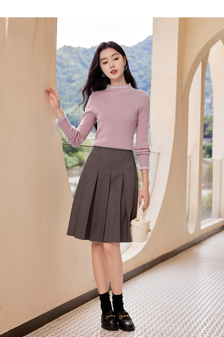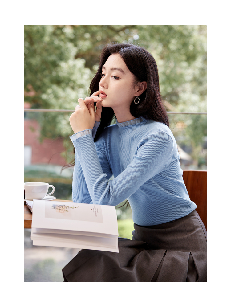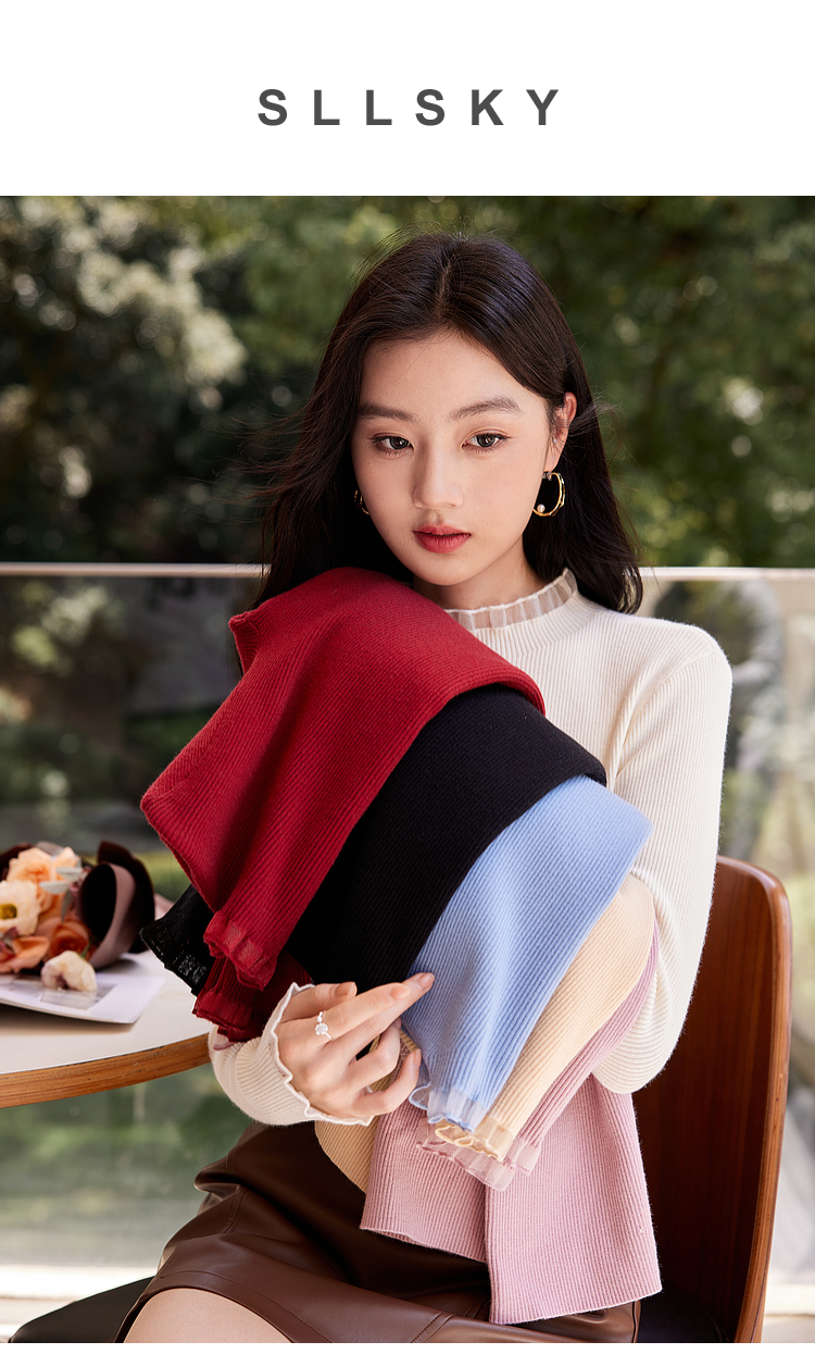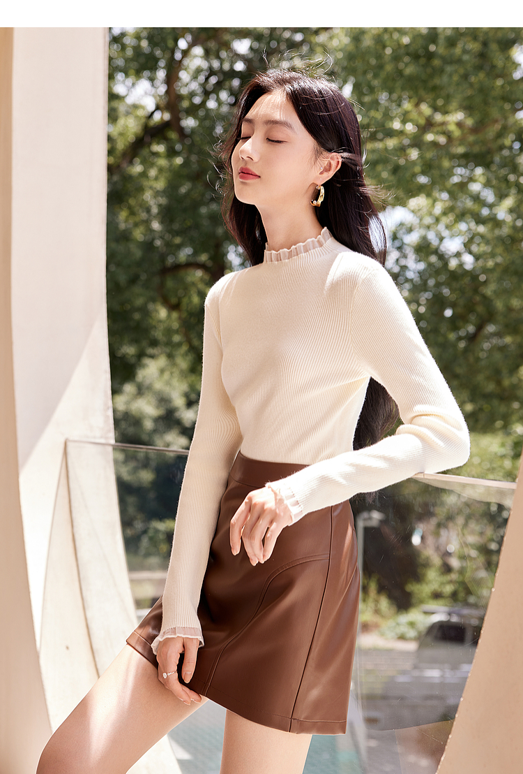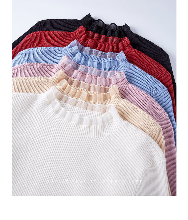 【年终特卖】熙世界木耳边半高领打底衫毛衣2025秋冬新款洋气修身内搭针织衫
