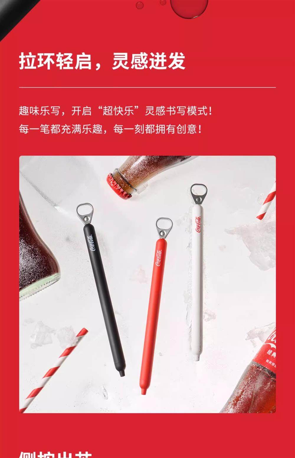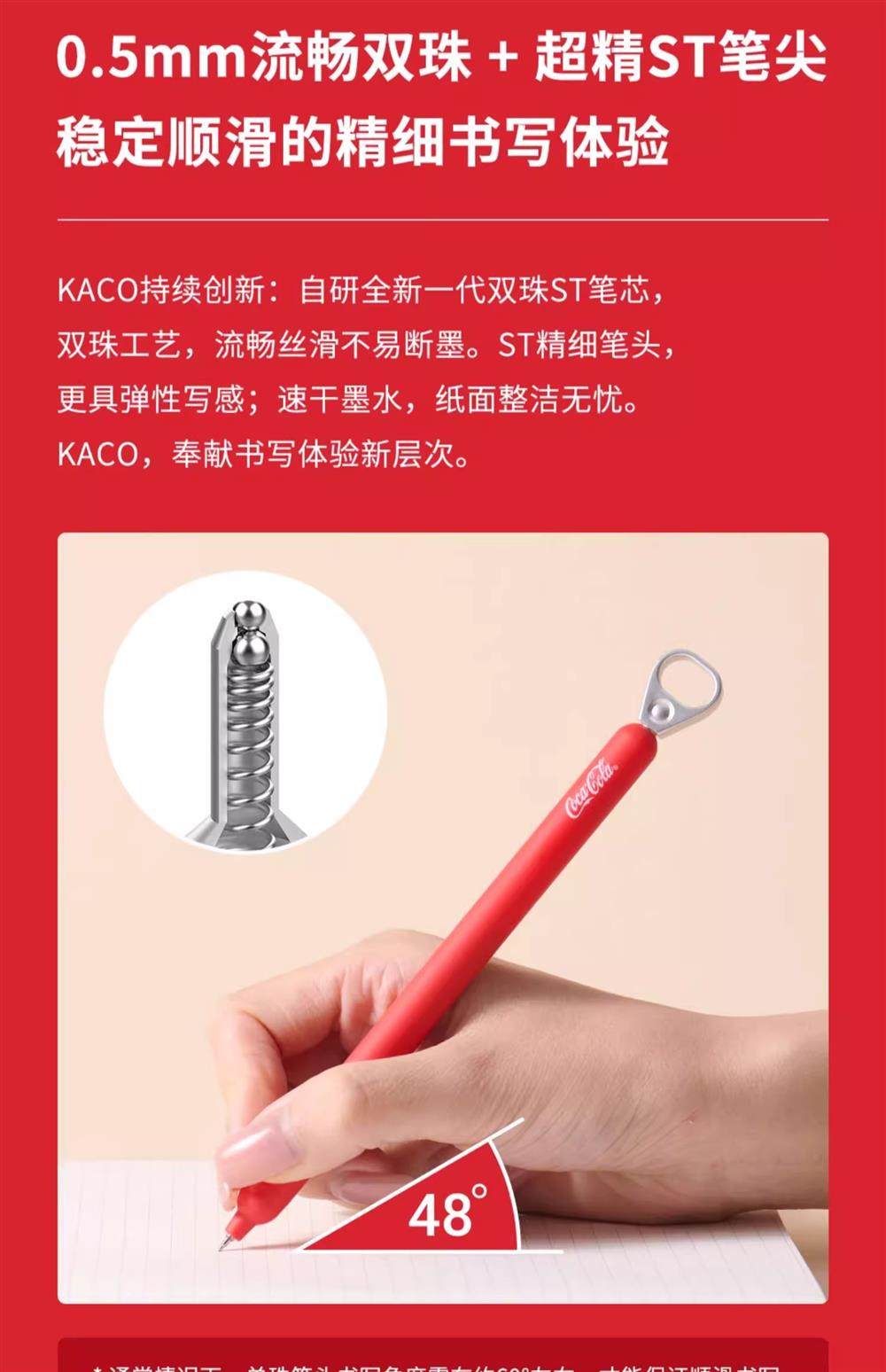 KACO可口可乐联名拉环中性笔灵悦按动双珠速干学生刷题笔