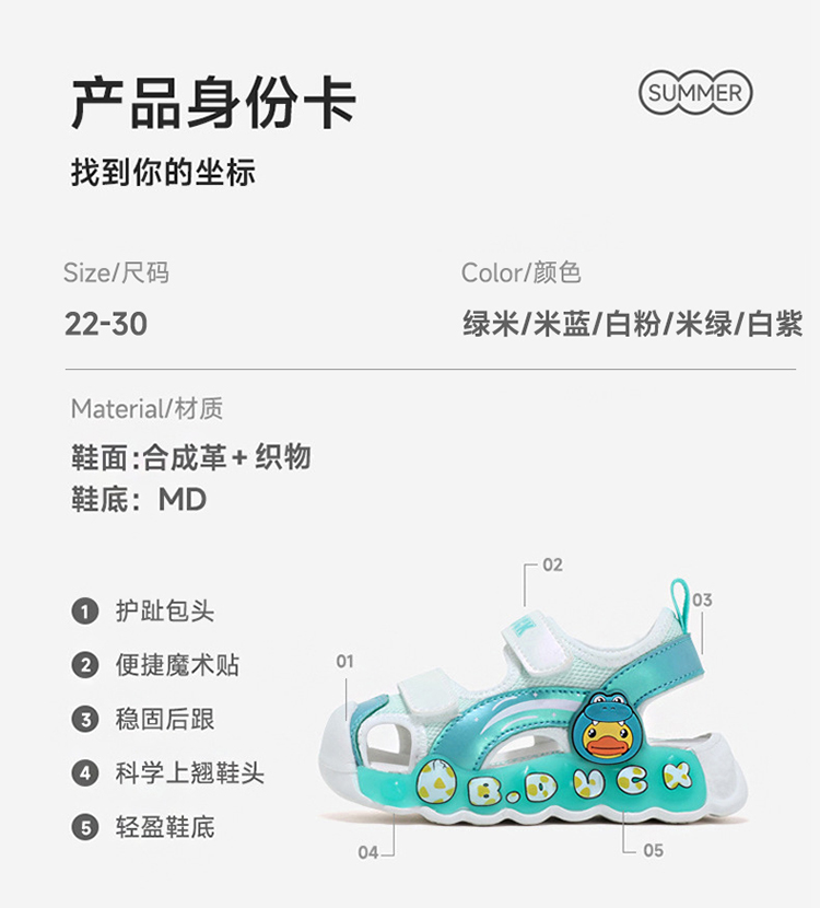 【灯鞋】B.Duck小黄鸭童鞋夏季儿童凉鞋22-30 B2485026