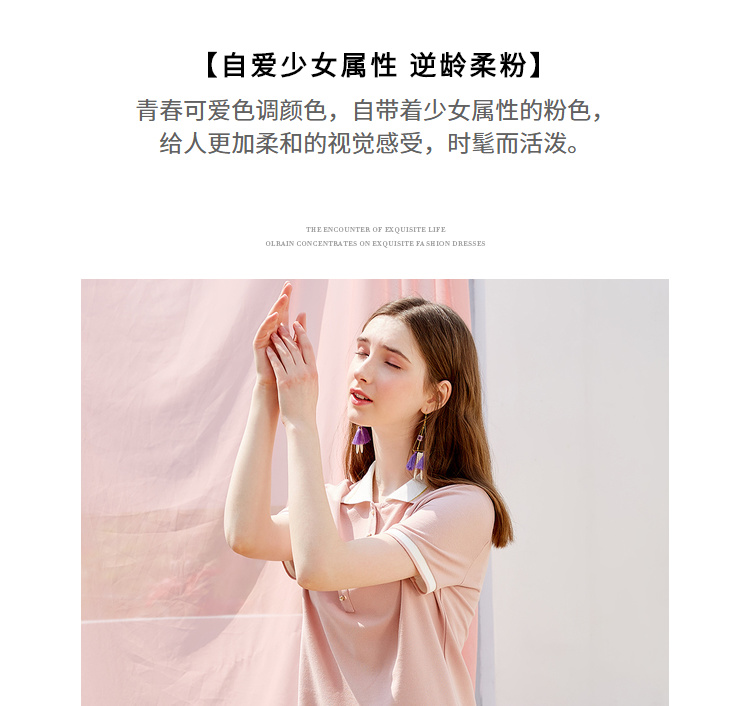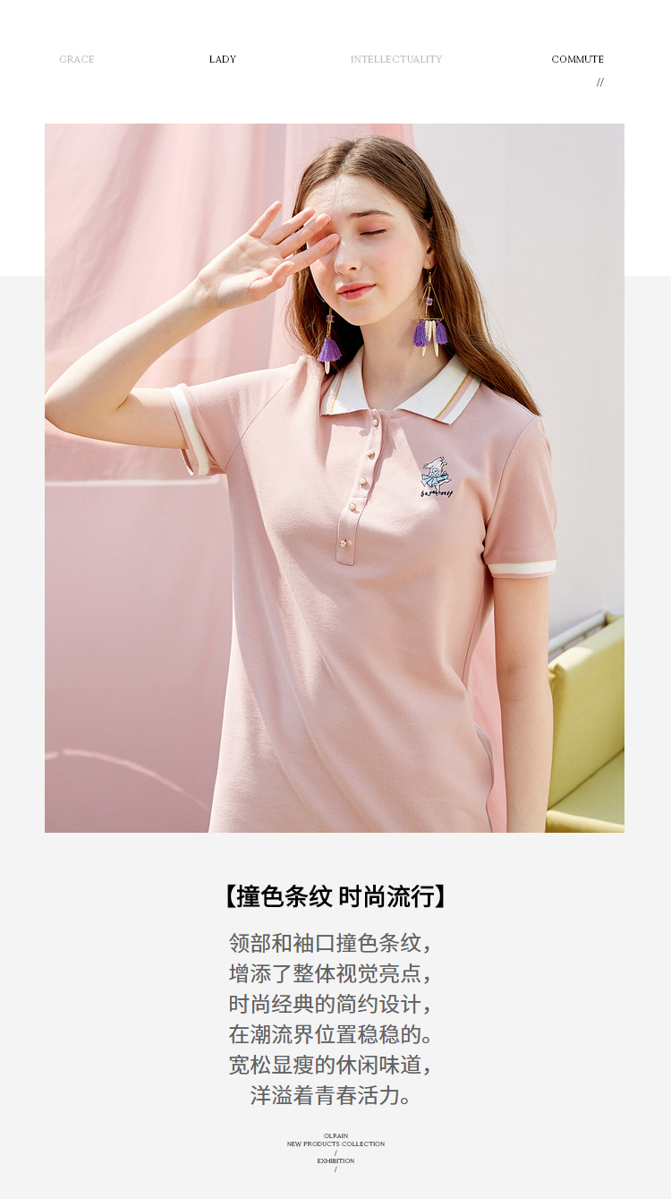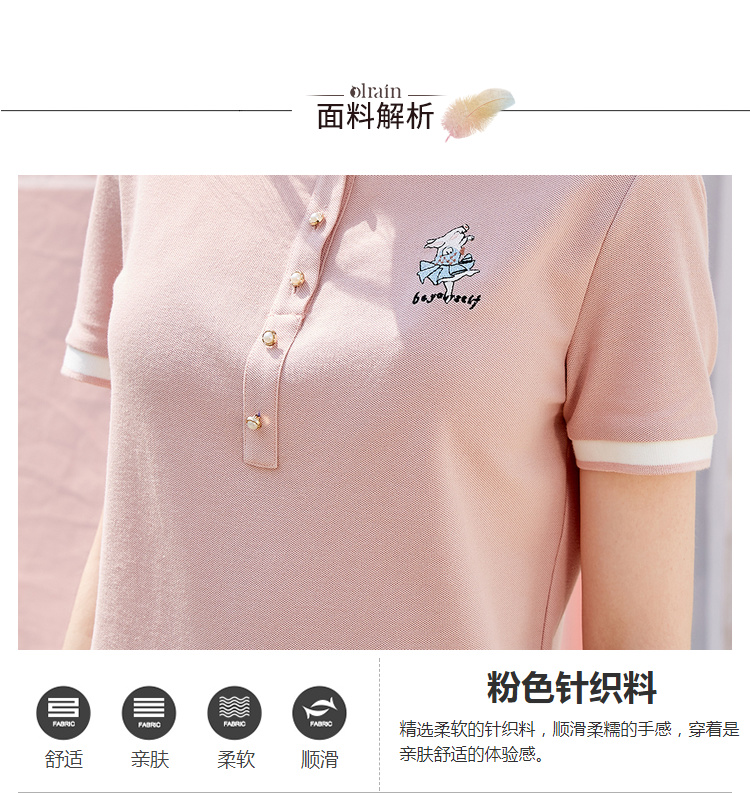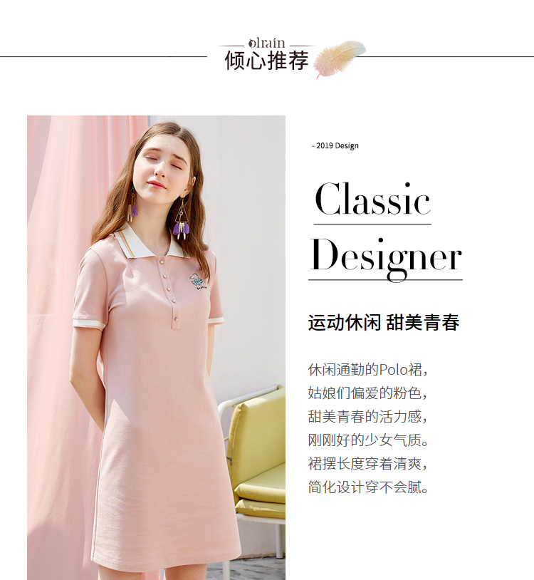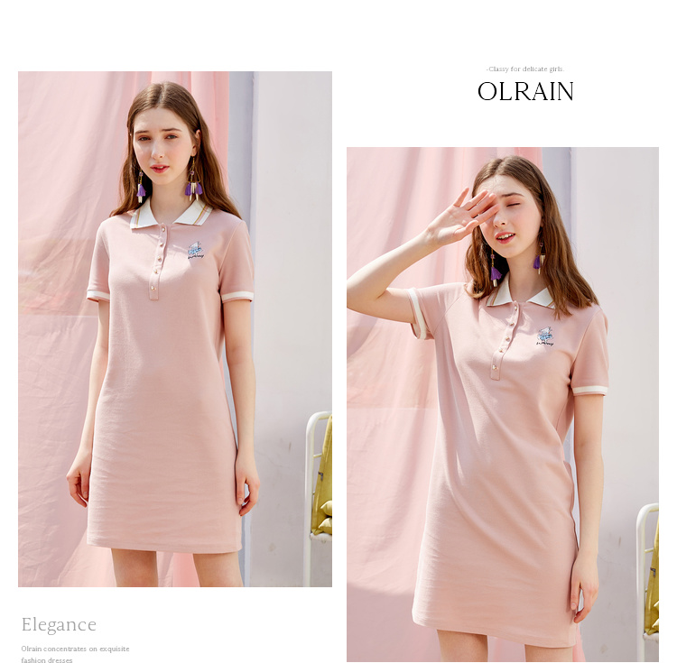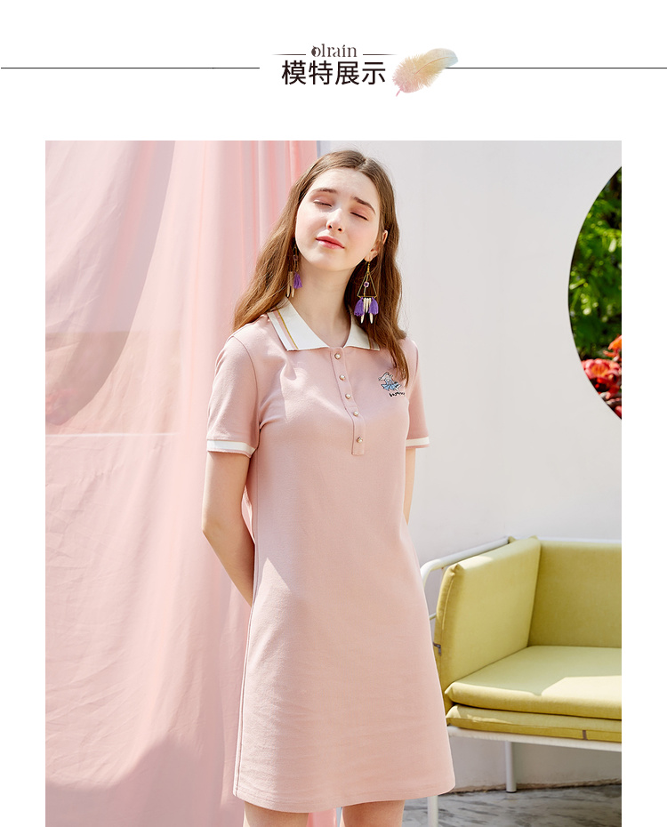 欧芮儿2019新款女装夏装polo领针织连衣裙女中长款刺绣绣花女裙子