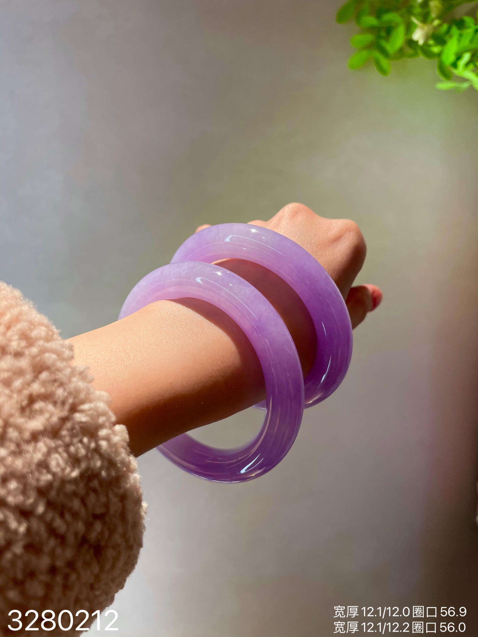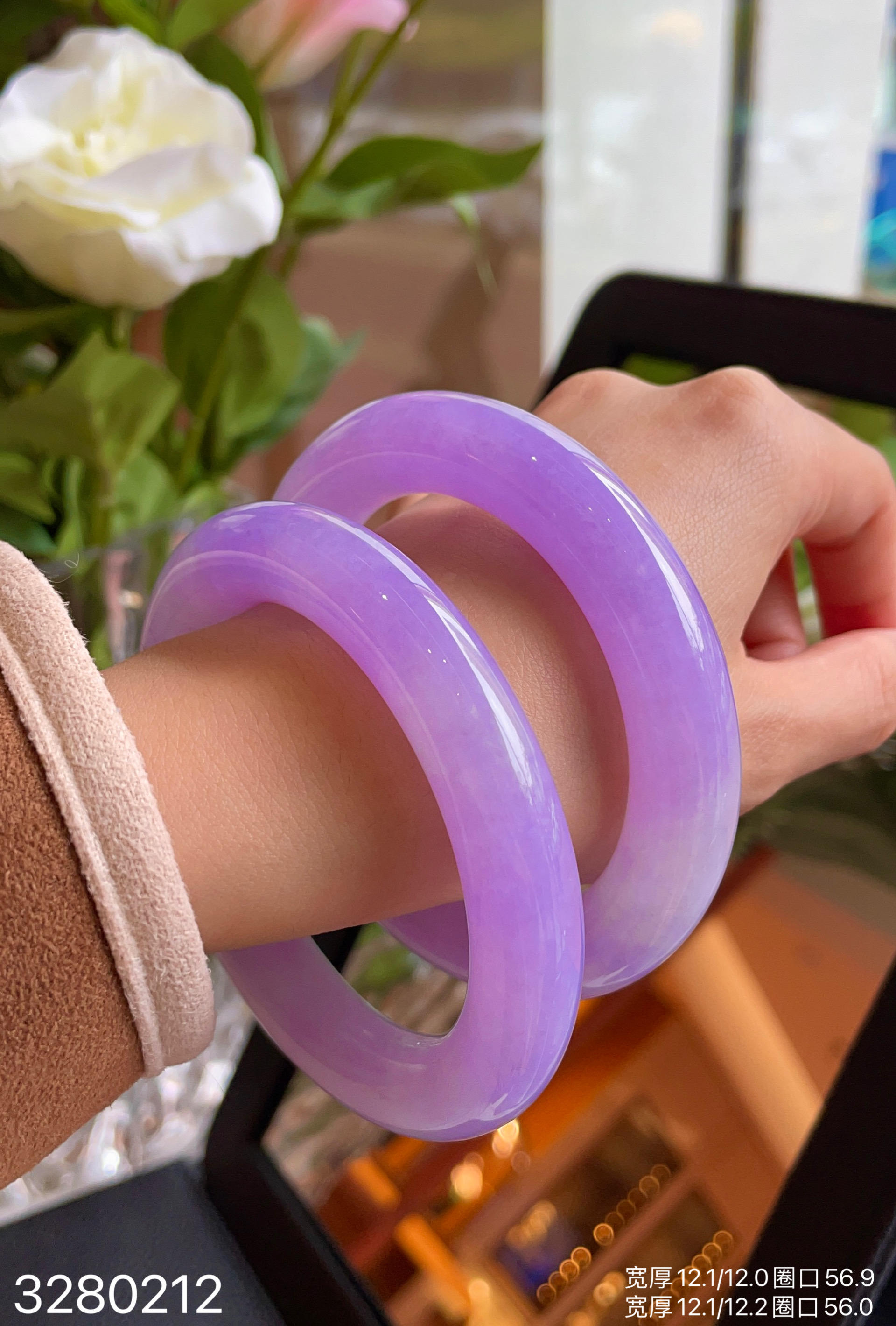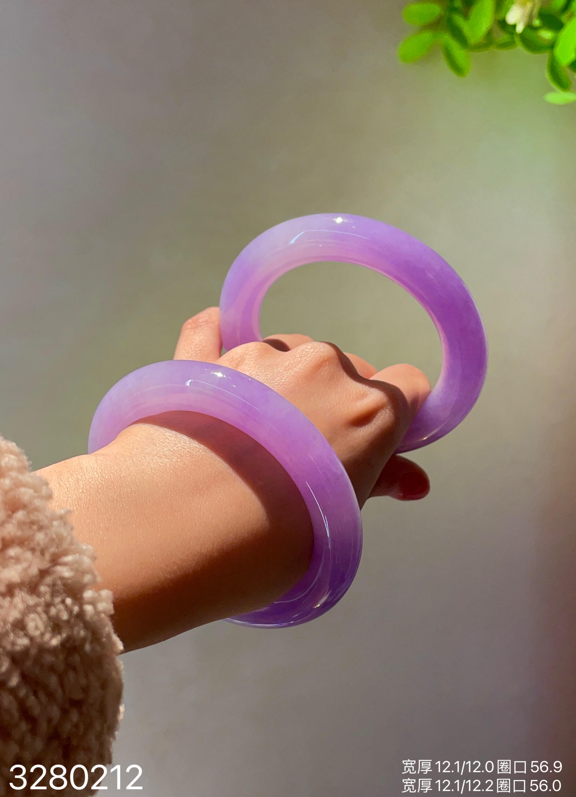 艳紫罗兰圆镯一对【3280212】圈口56.9/56.0~具体价格微信咨询
