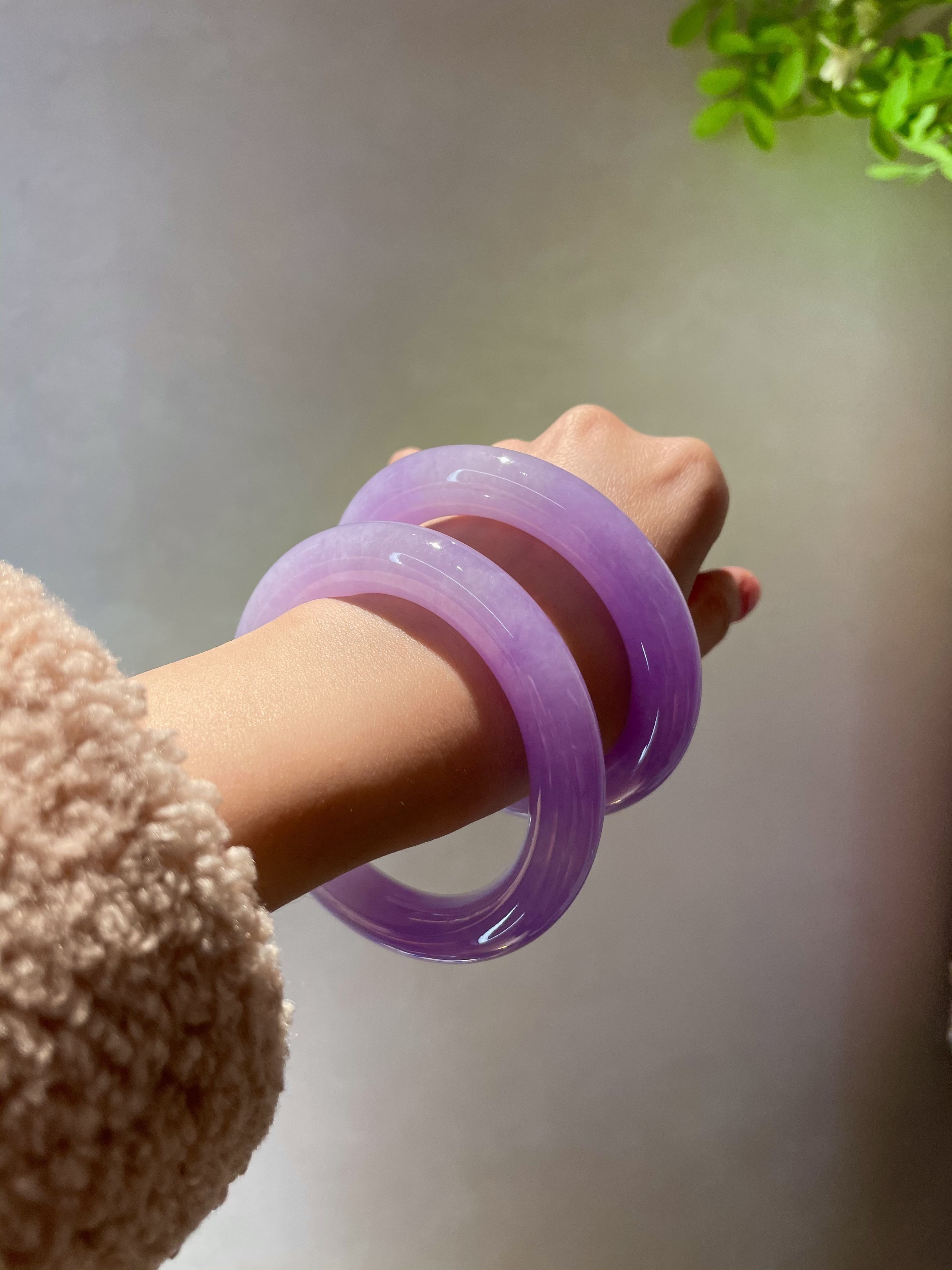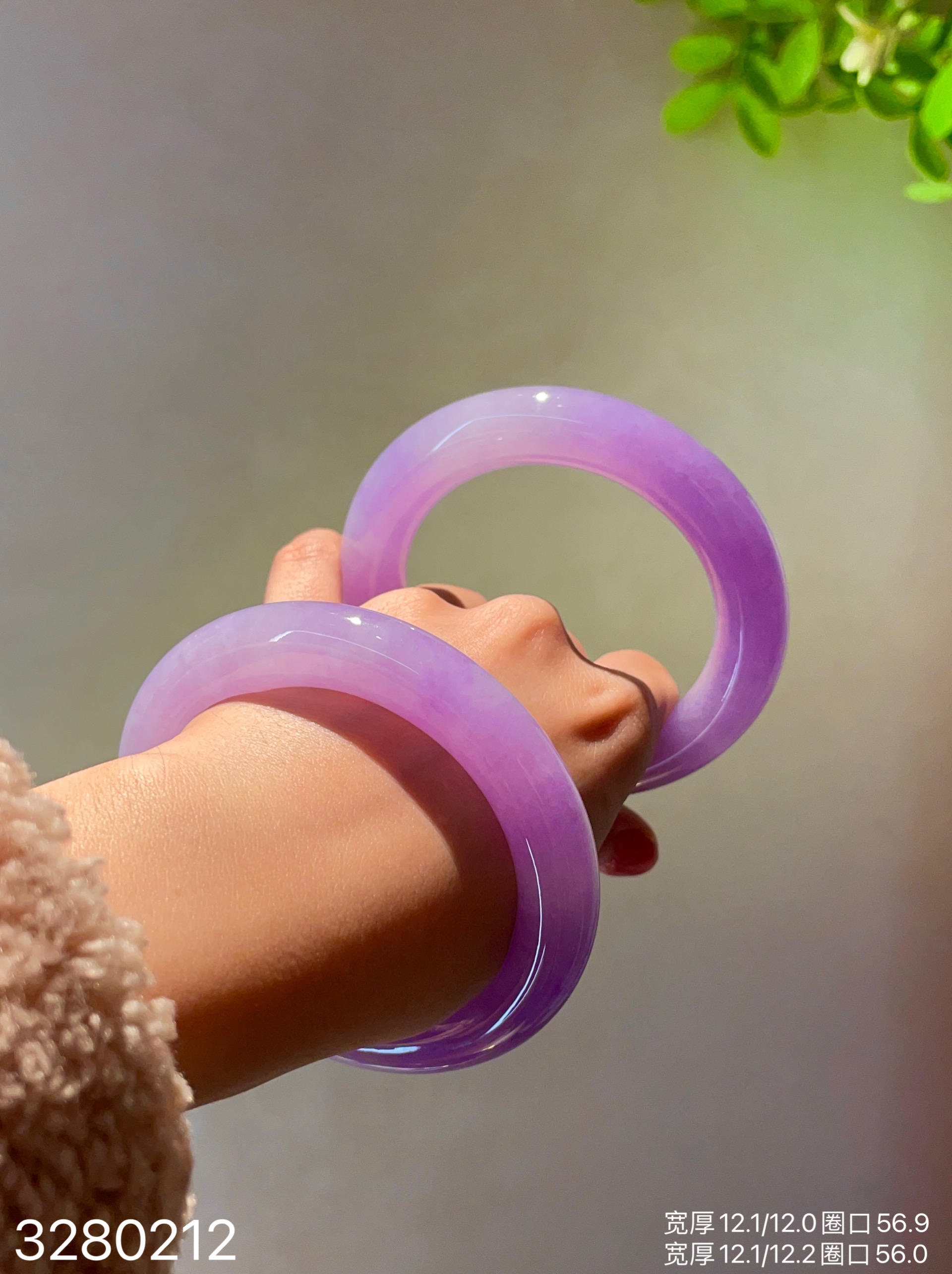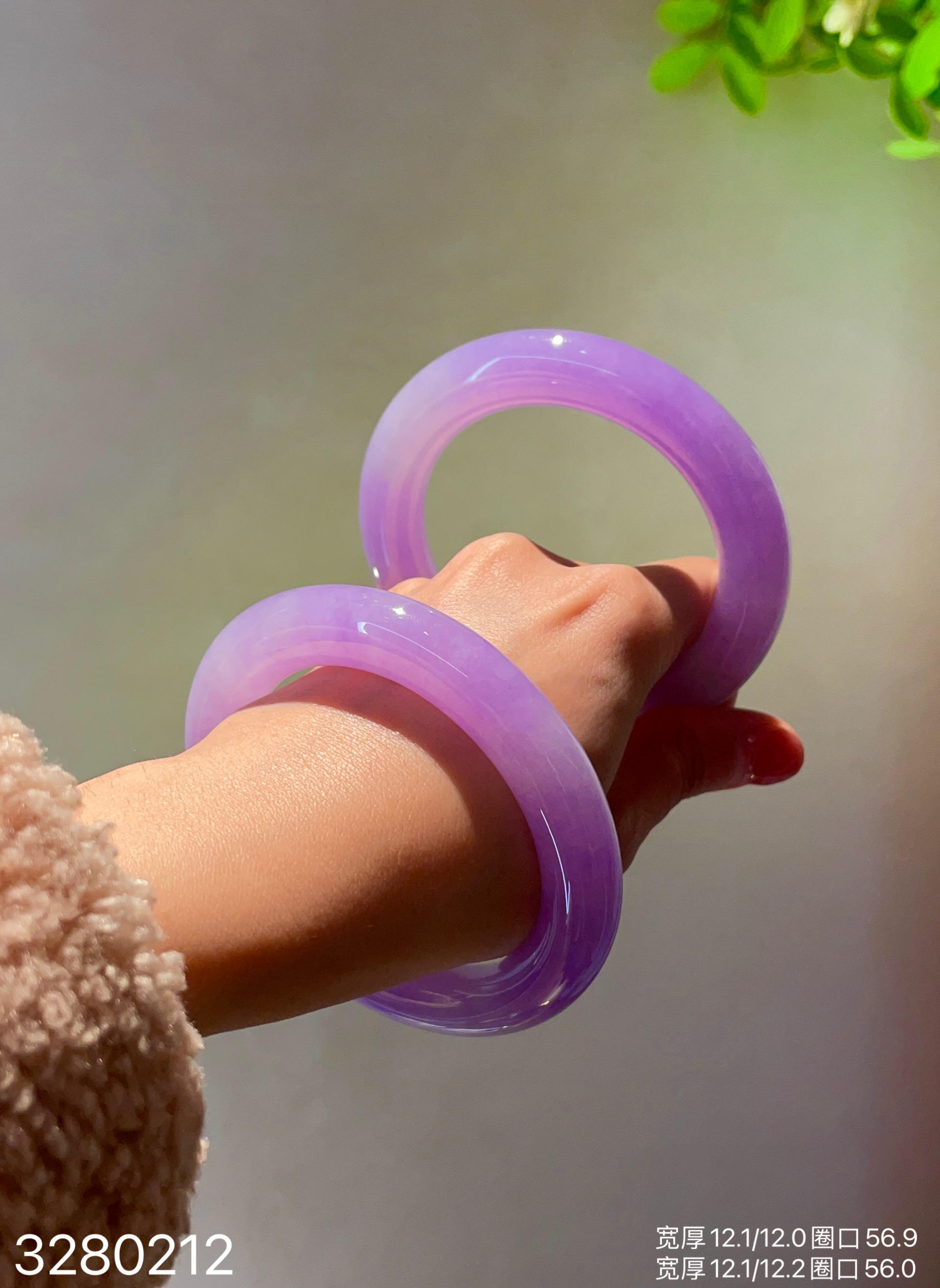艳紫罗兰圆镯一对【3280212】圈口56.9/56.0~具体价格微信咨询
