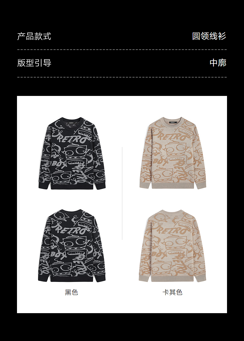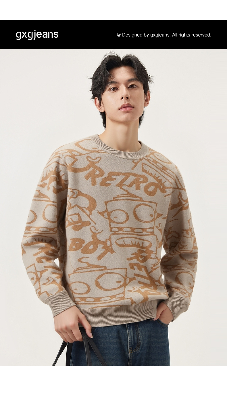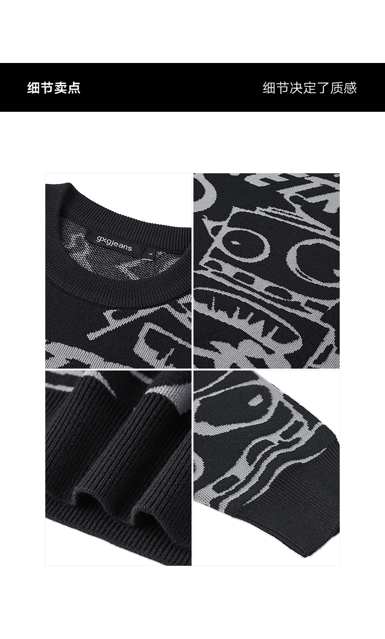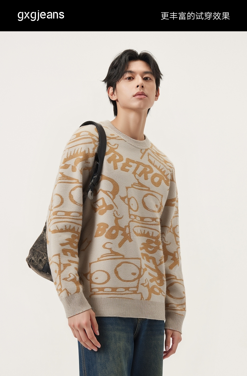 gxg.jeans男装 多色趣味图案宽松休闲毛衣男圆领线衫 25秋冬热卖