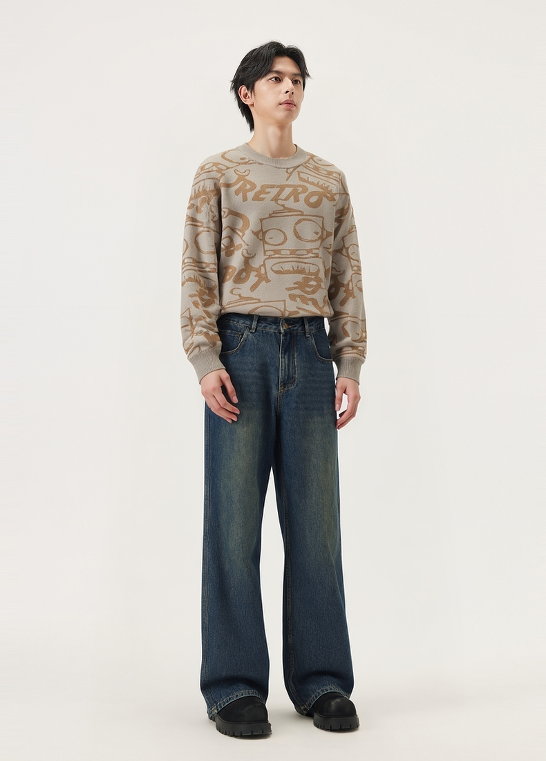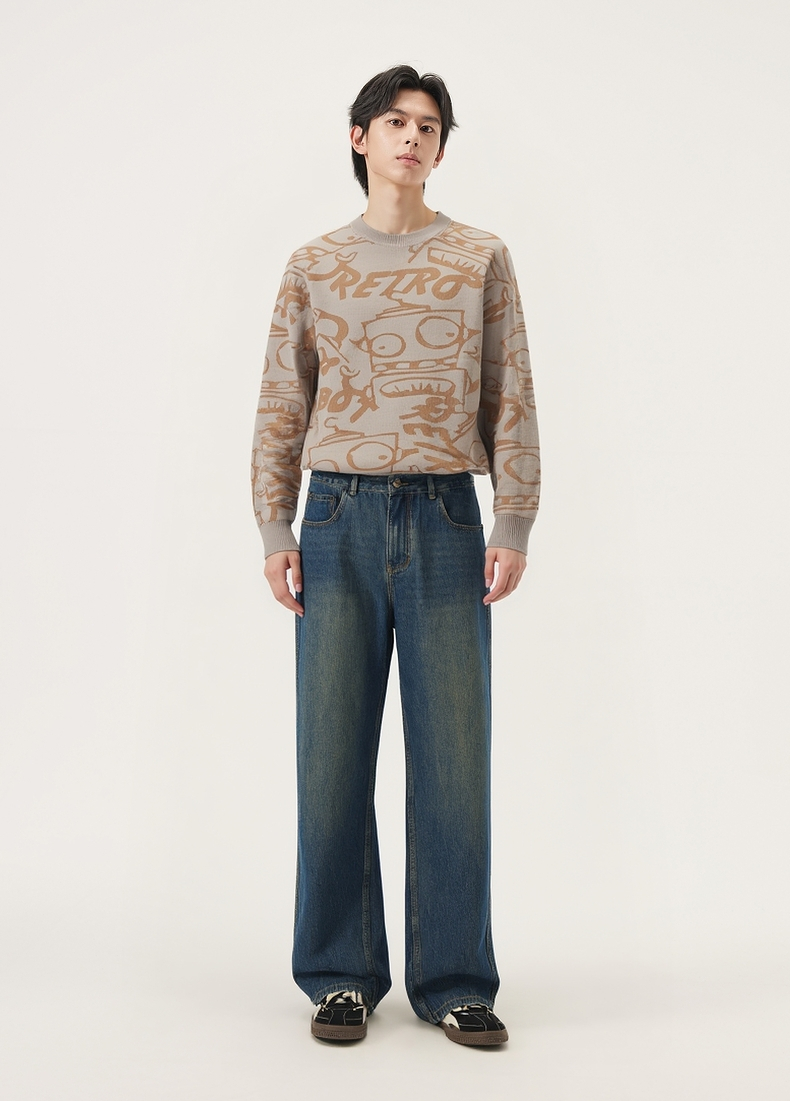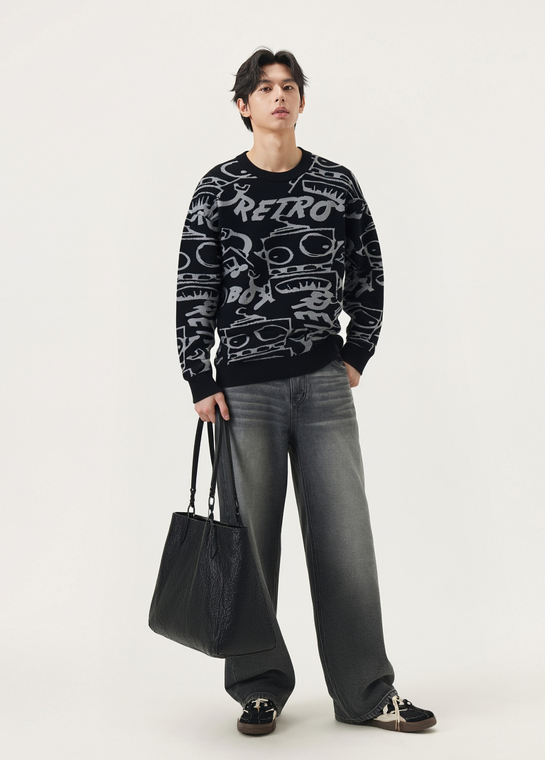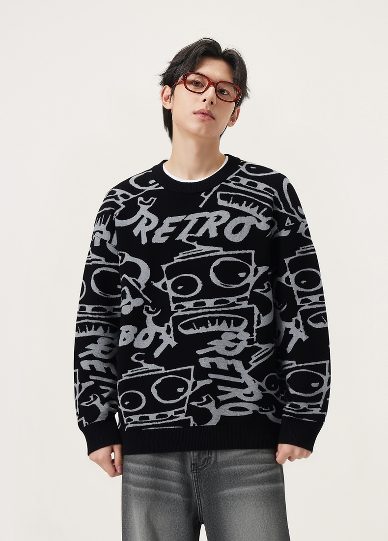gxg.jeans男装 多色趣味图案宽松休闲毛衣男圆领线衫 25秋冬热卖