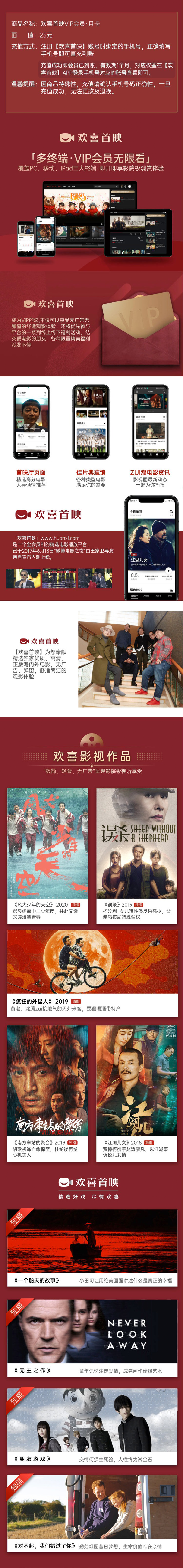 欢喜首映会员月卡直充 自动充值
