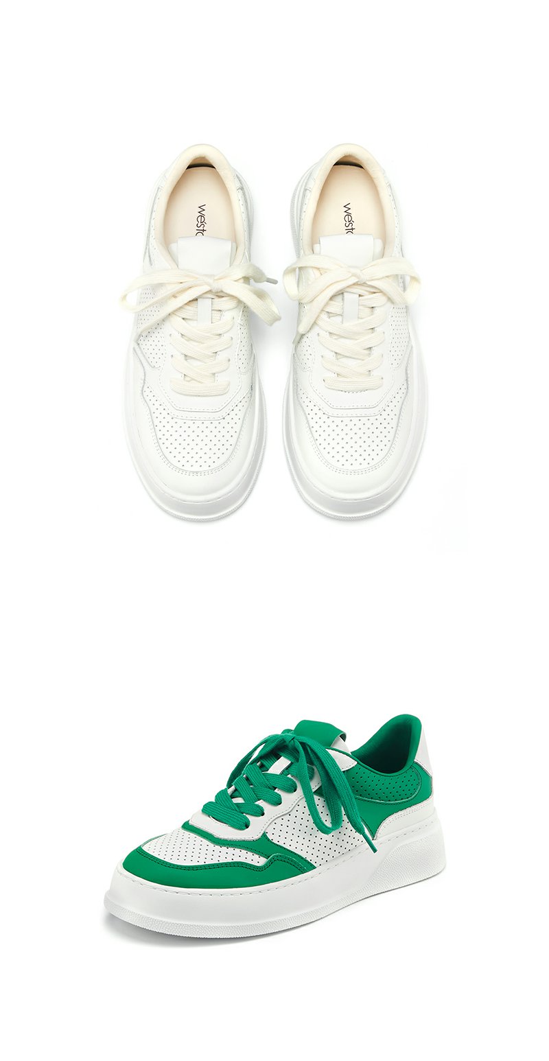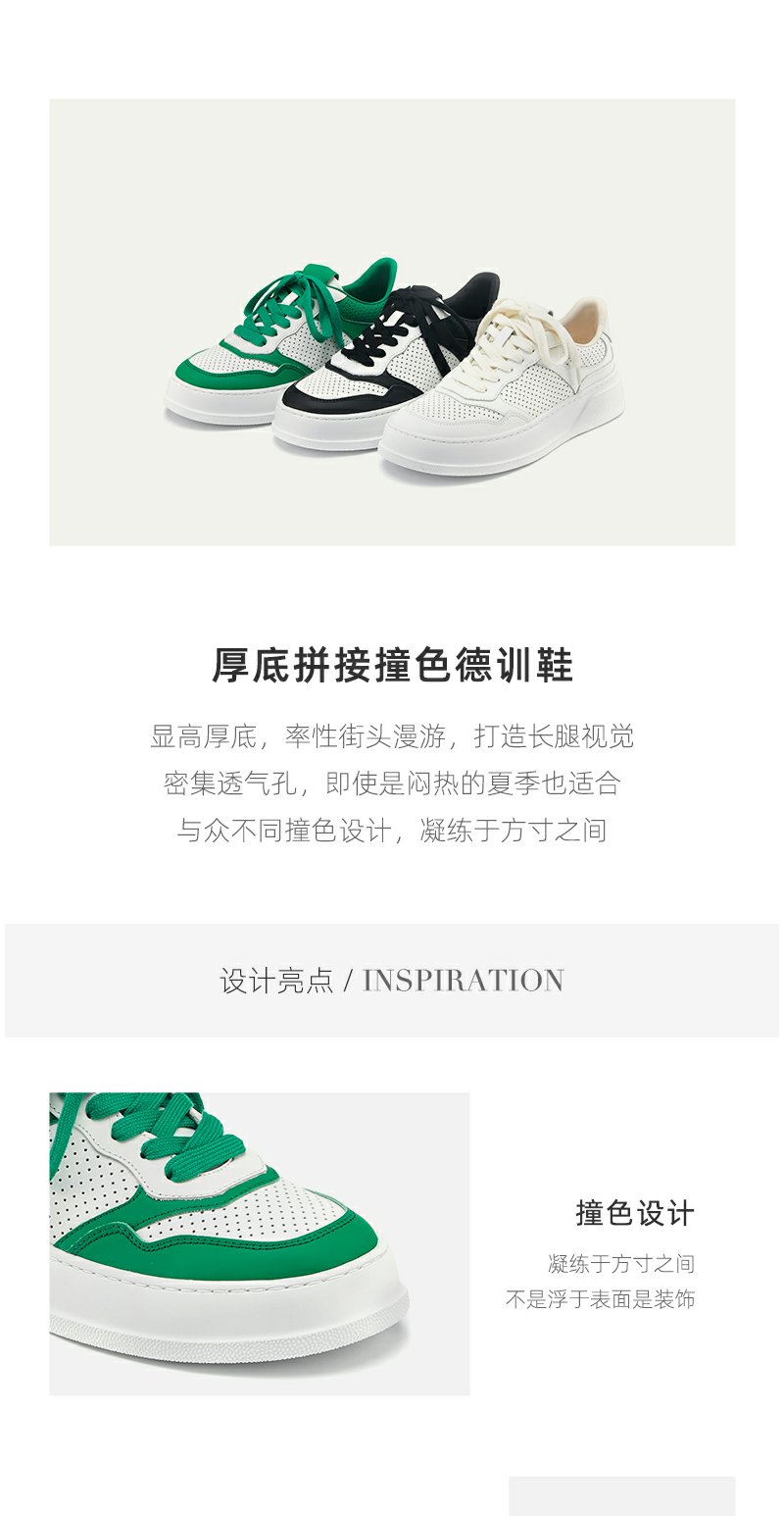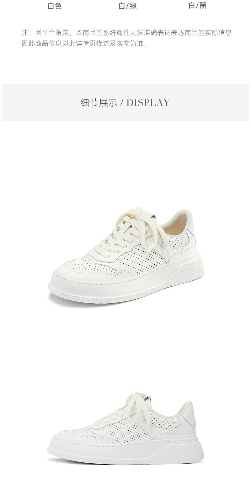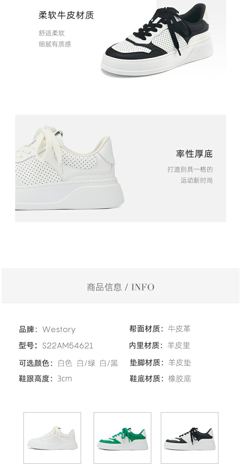 westory2023年春季新款真皮增高厚底低帮小白鞋百搭透气板鞋55691