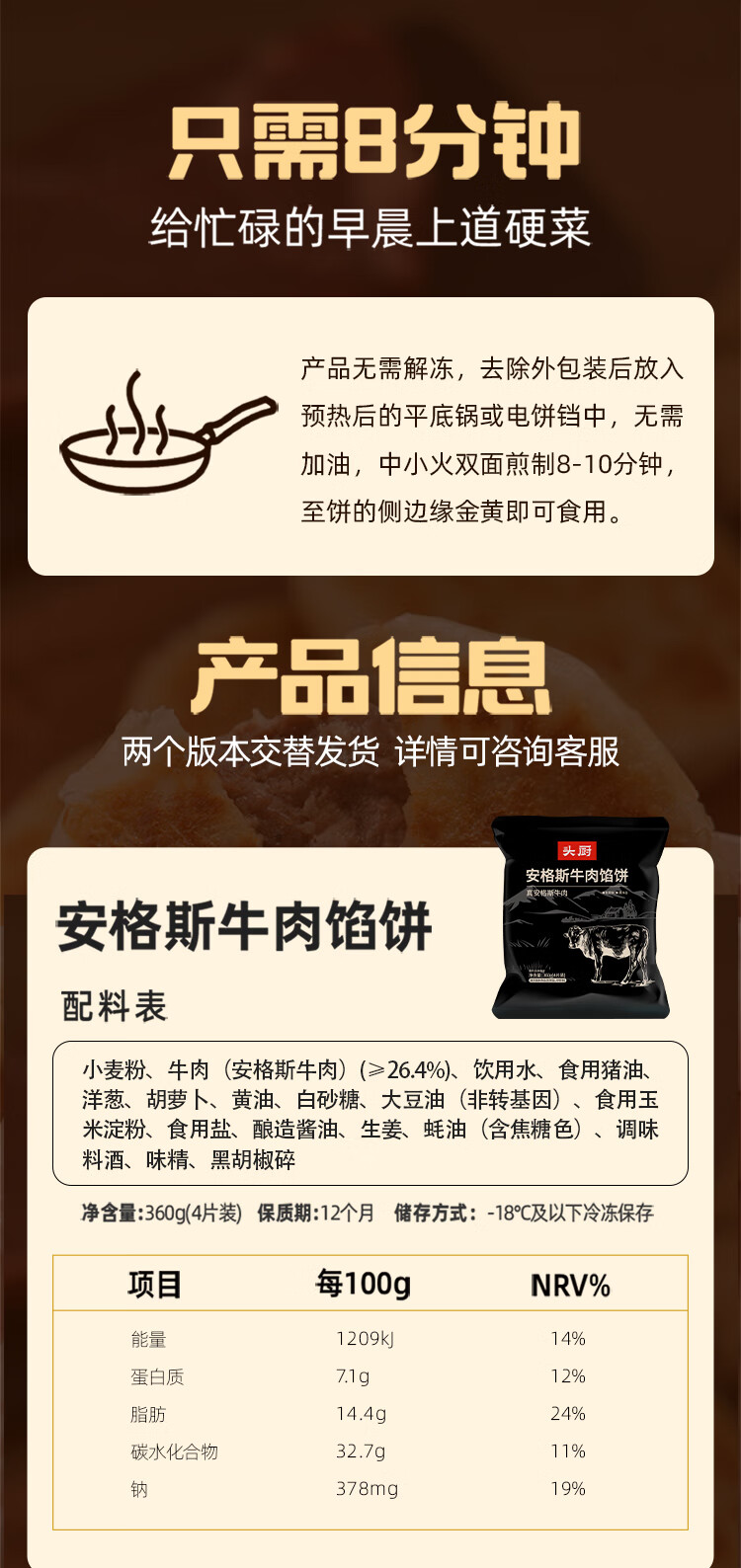 【分仓直发包邮】头厨安格斯牛肉薄皮馅饼360g/袋*3(共12片)