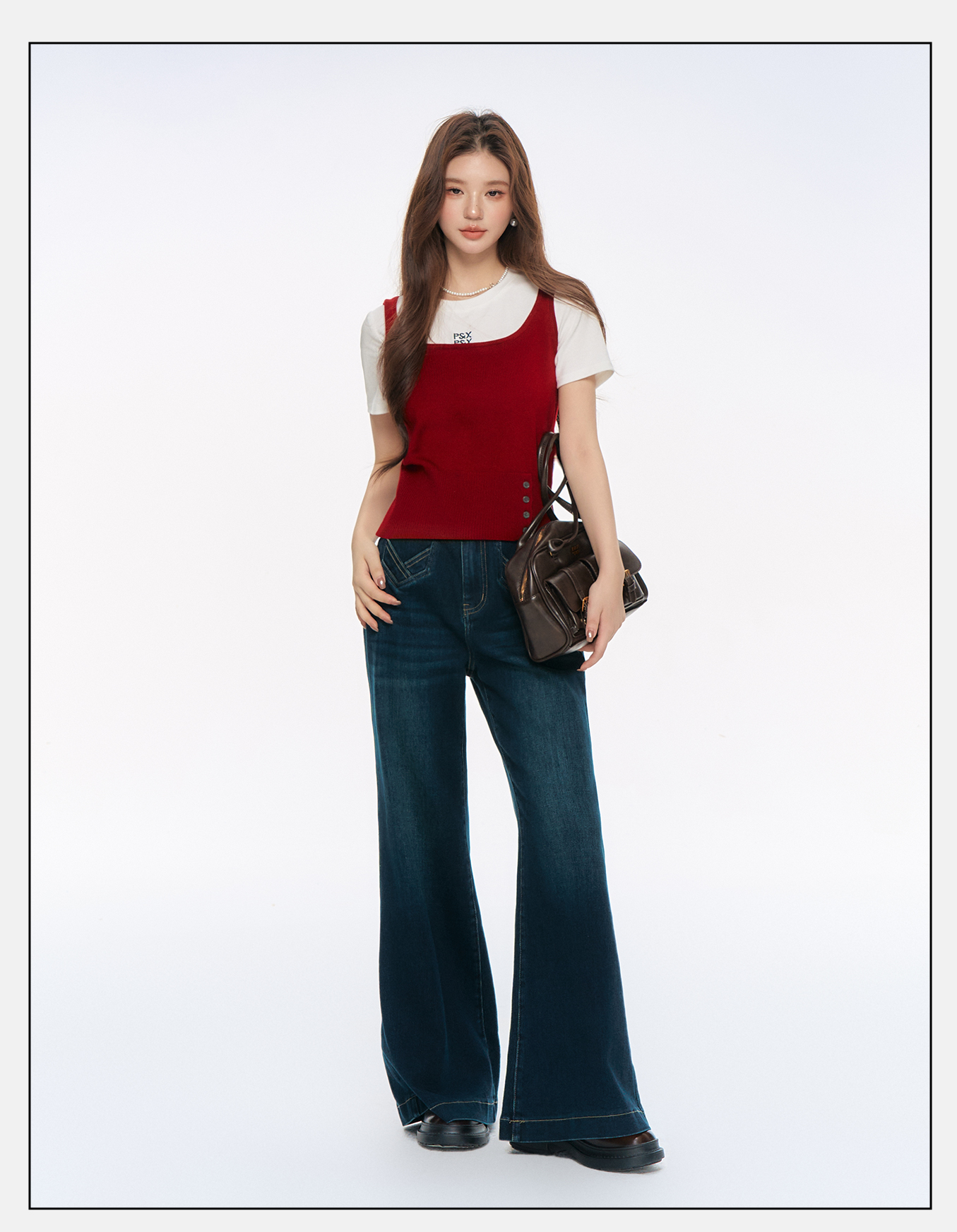 P&X设计师女装2025秋季新款百搭阔腿高腰牛仔长裤 825310256 蓝色