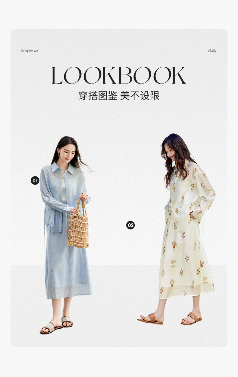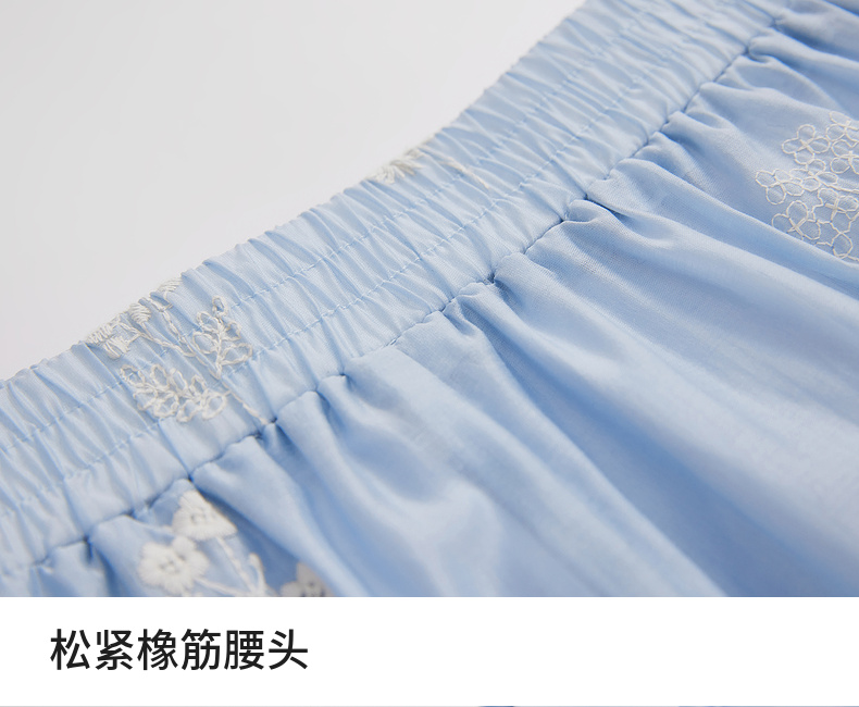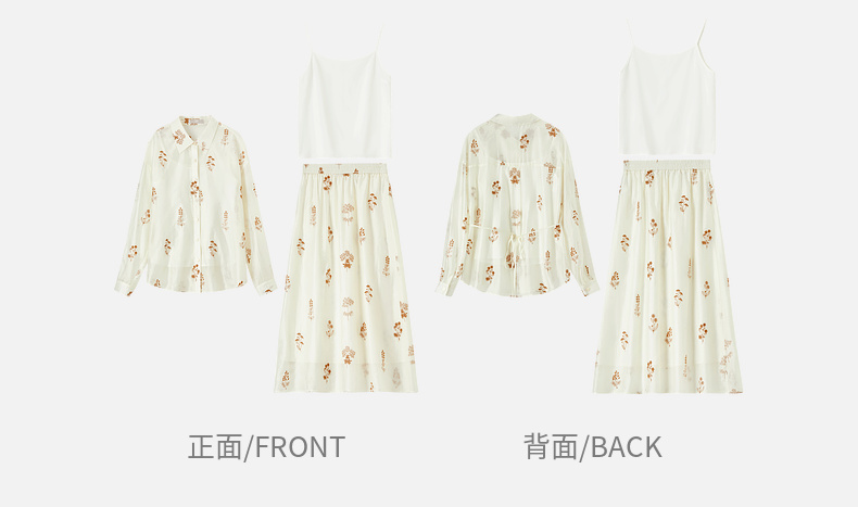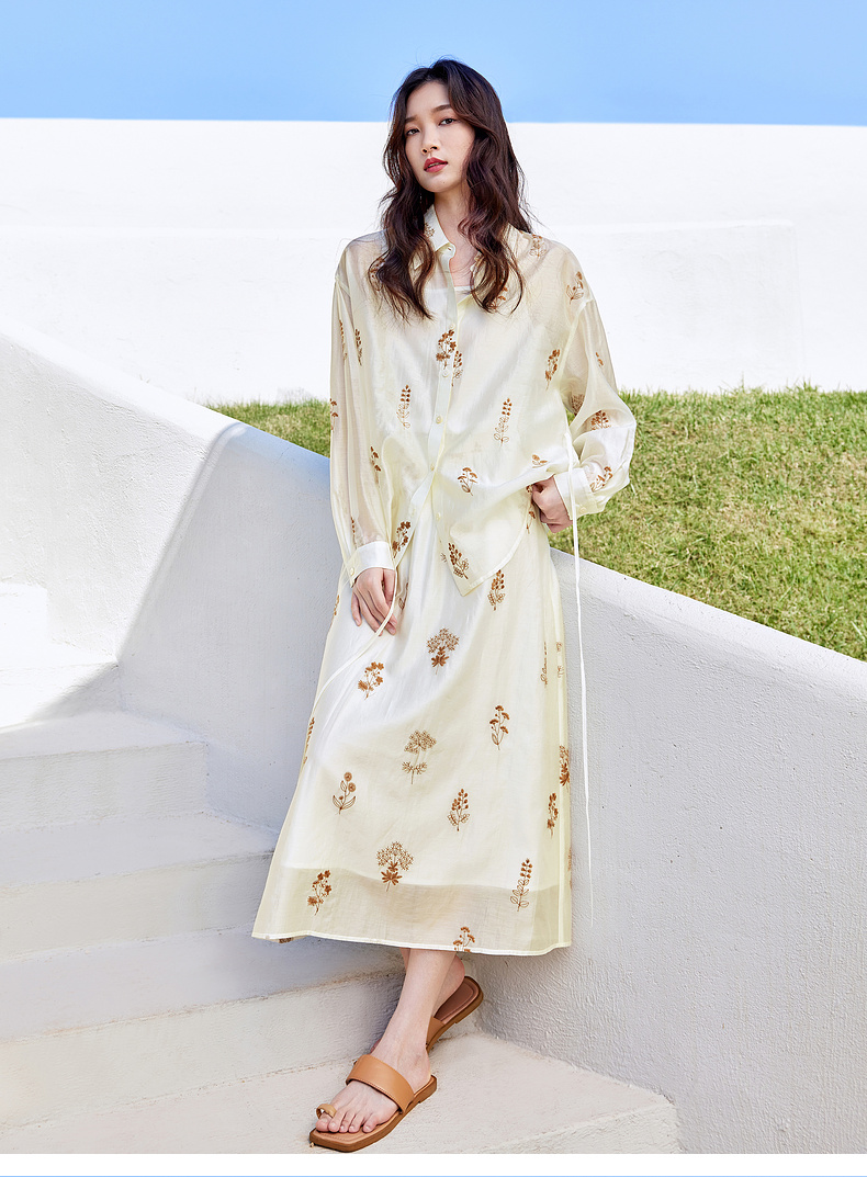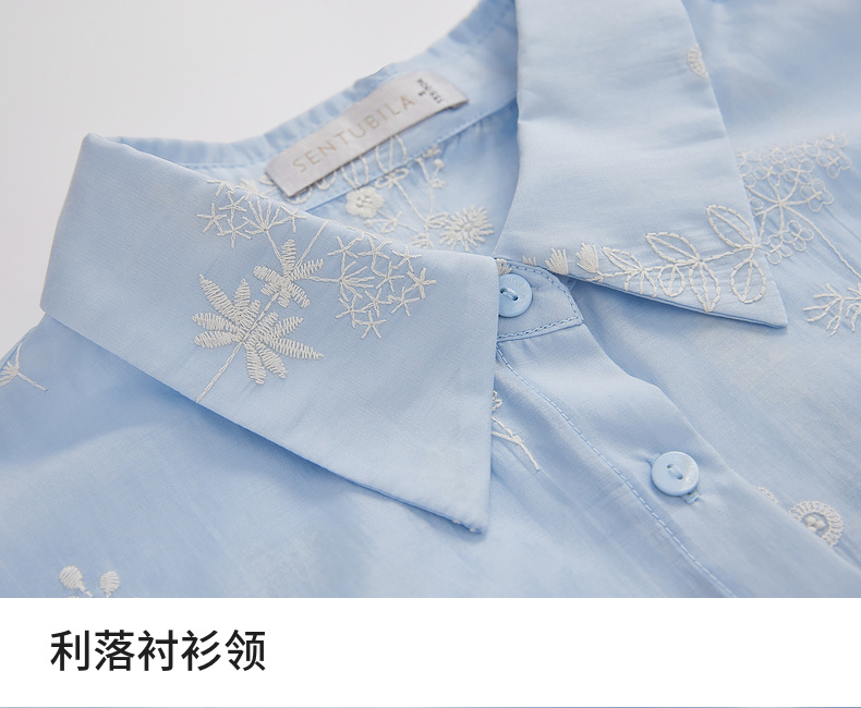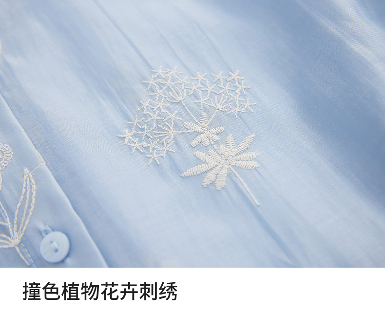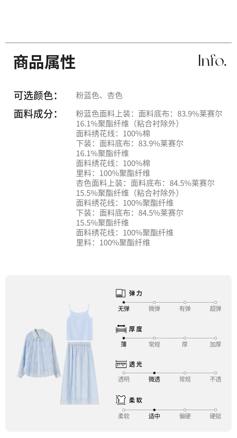 【内购】优雅撞色刺绣翻领系绑带衬衫&松紧腰A字中长半身裙-151Z58161