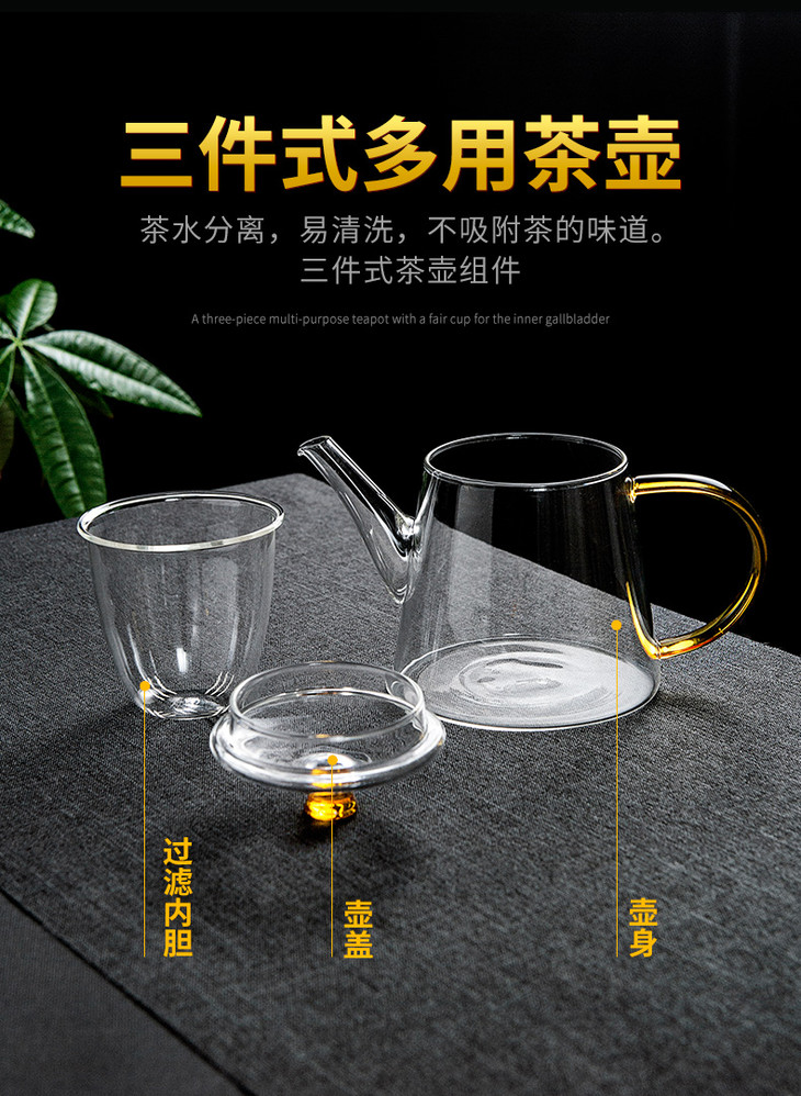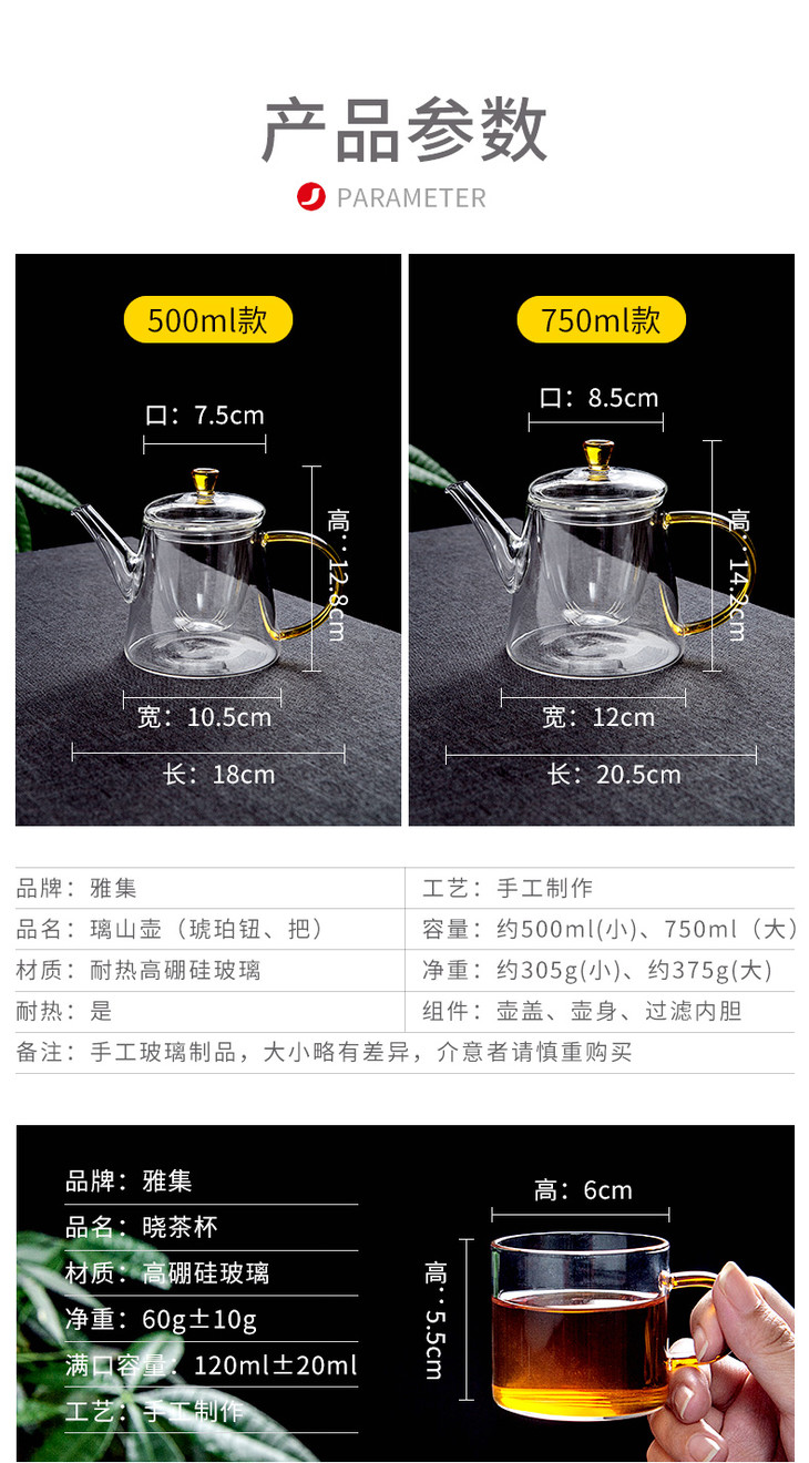 雅集 璃山壶玻璃过滤泡茶壶 家用耐高温耐热茶具