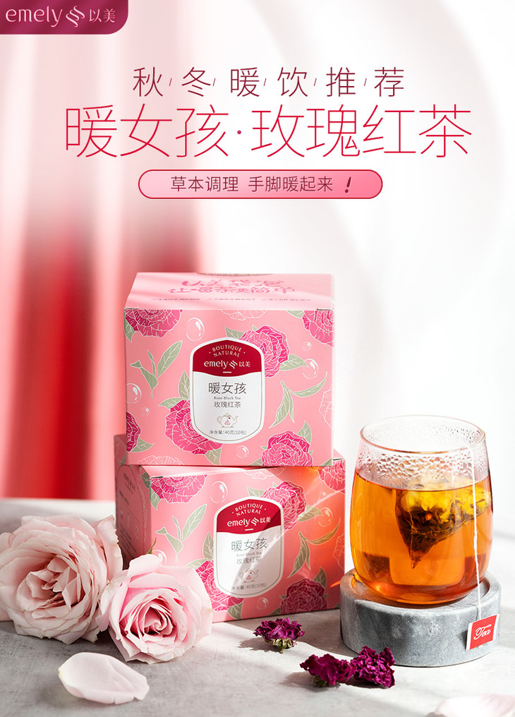 以美 暖女孩 玫瑰花茶红茶枸杞茶 冬季花茶组合装养生茶饮品 袋泡三角茶包 40g/盒