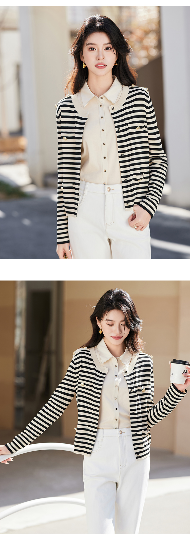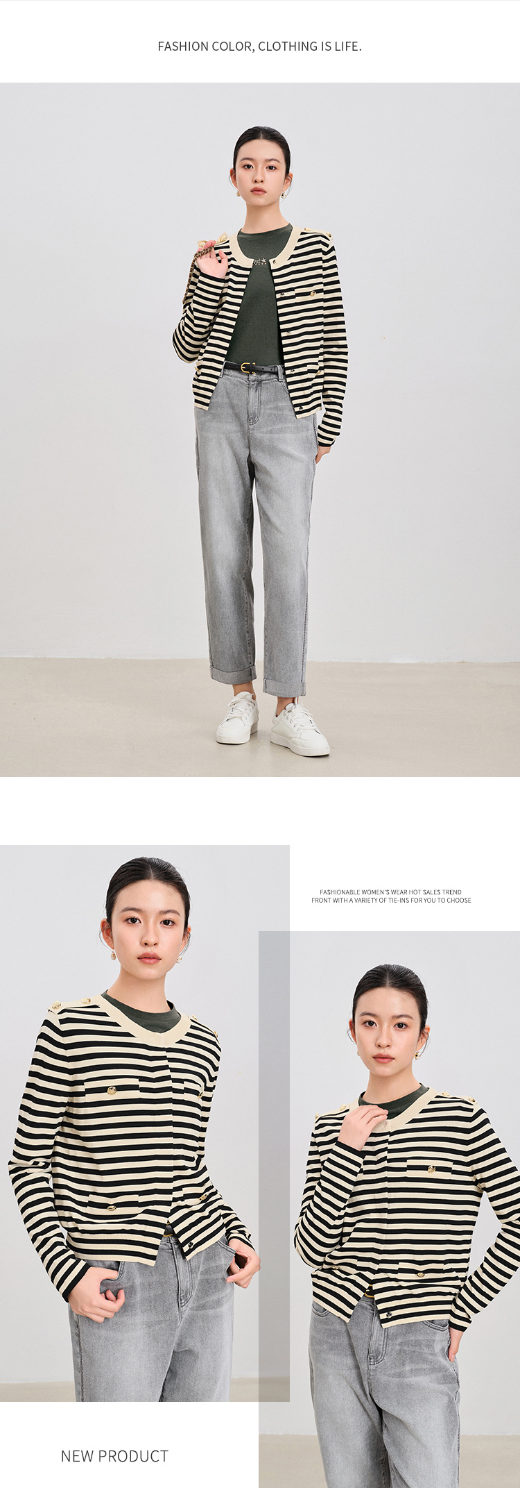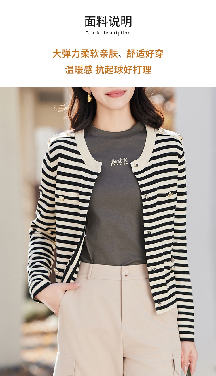 【商场同款】CNR4284 经典条纹开衫在春日很有活力,线条带来的文艺感让搭配更减龄 黏胶锦纶的质感耐磨擦 实穿好打理