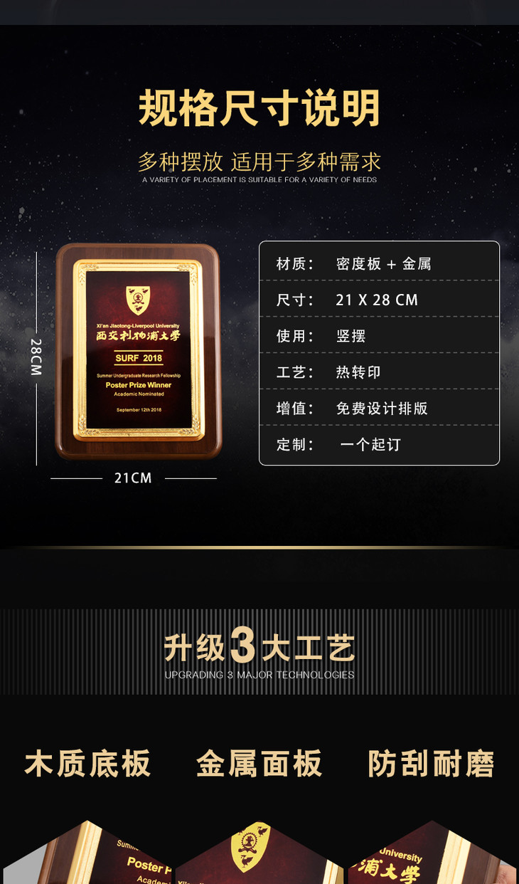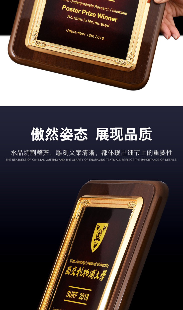 橄榄枝木质奖牌定制定做水晶授权牌制作金属牌匾刻字定做荣誉证书