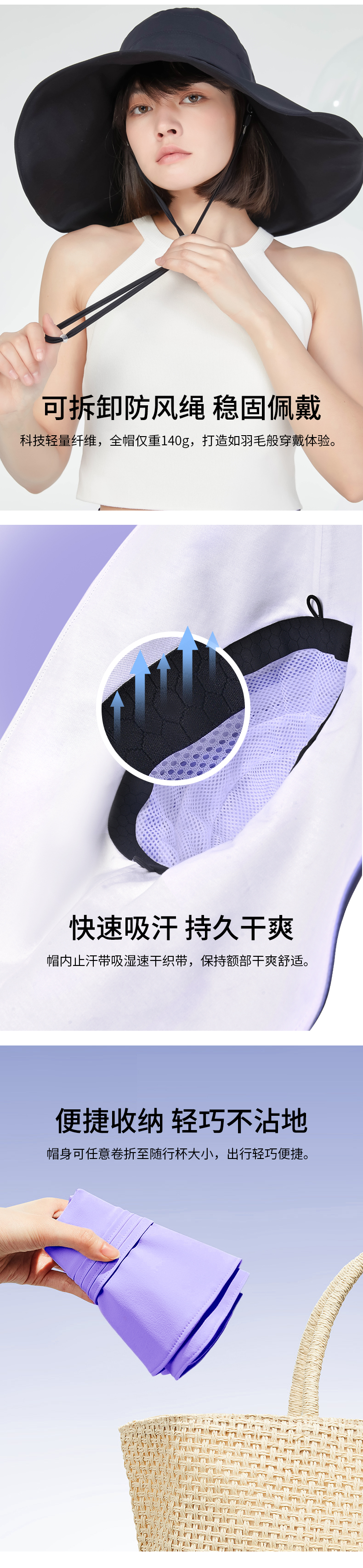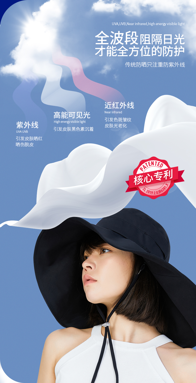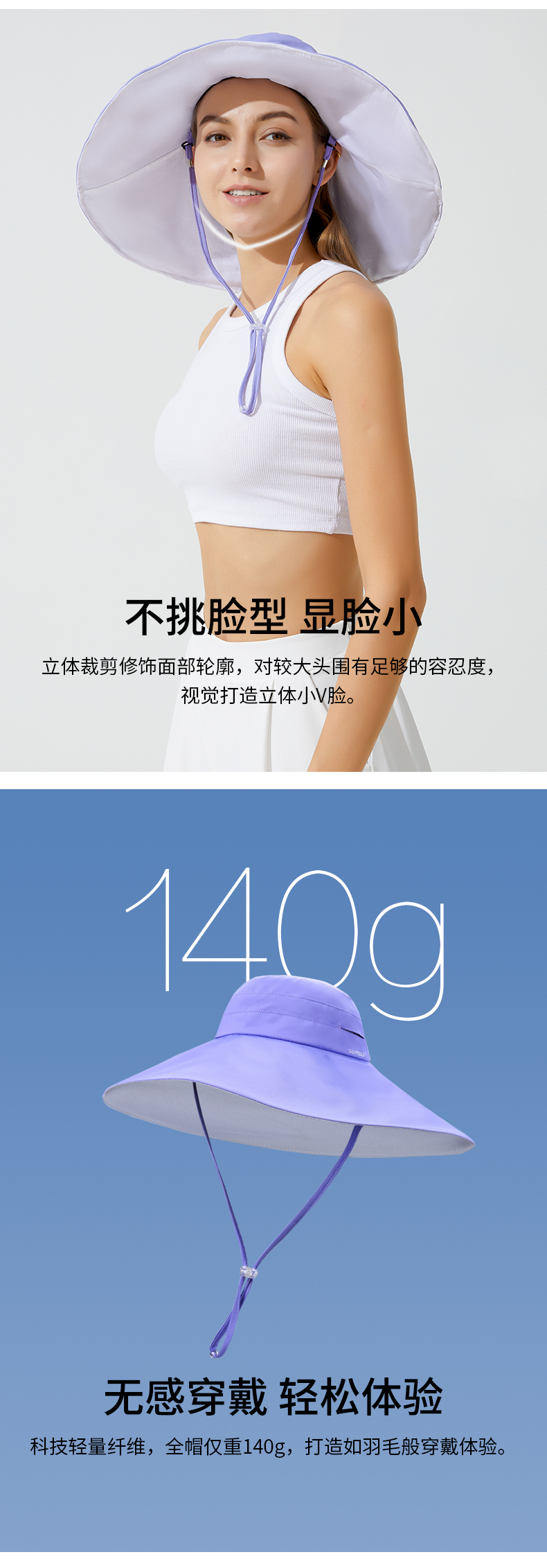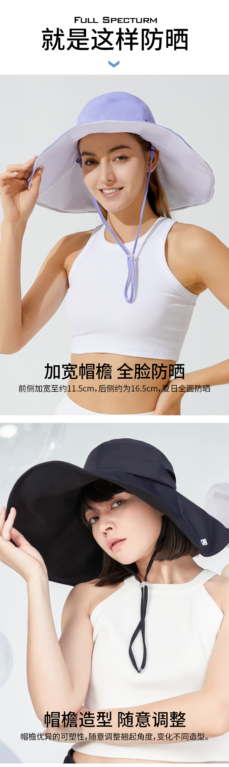 Supield素湃超大檐渔夫帽全波段防晒帽防紫外线夏季户外遮阳帽子