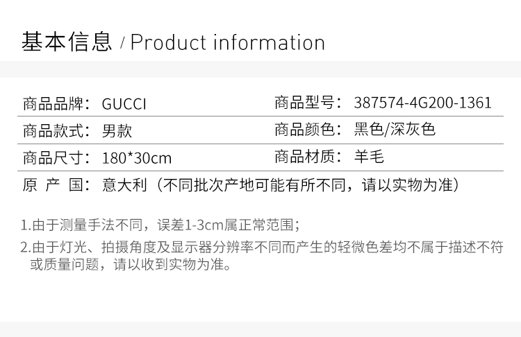 GUCCI 古驰 男女通用中性款灰色围巾 387574-4G200-1361